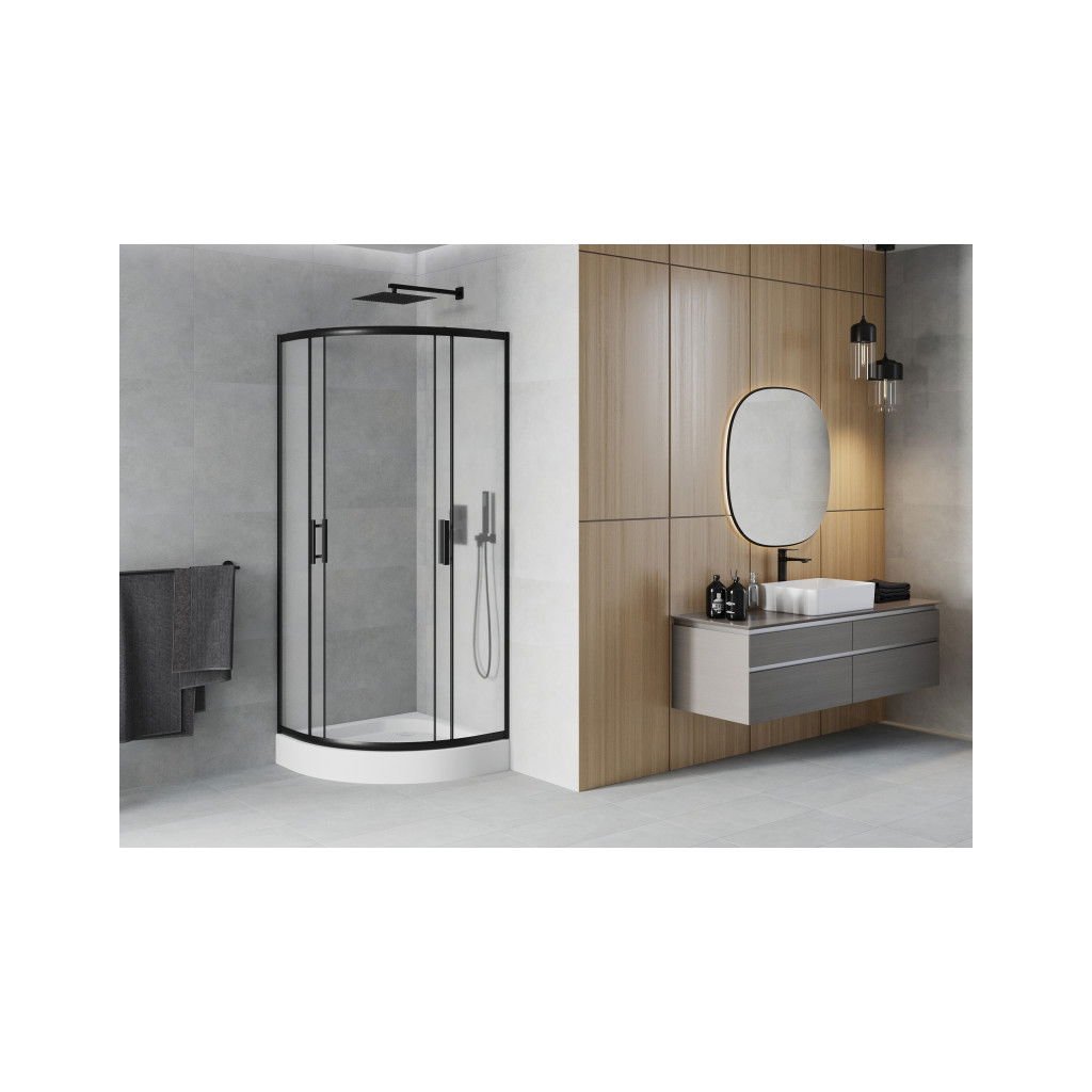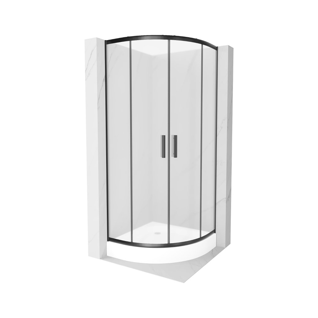 Mexen Rio, čtvrtkruhový sprchový kout s posuvnými dveřmi 80 (dveře) x 80 (dveře) x 190 cm, 5mm sklo námraza, černý profil + bílá sprchová vanička RIO, 863-080-080-70-30-4710