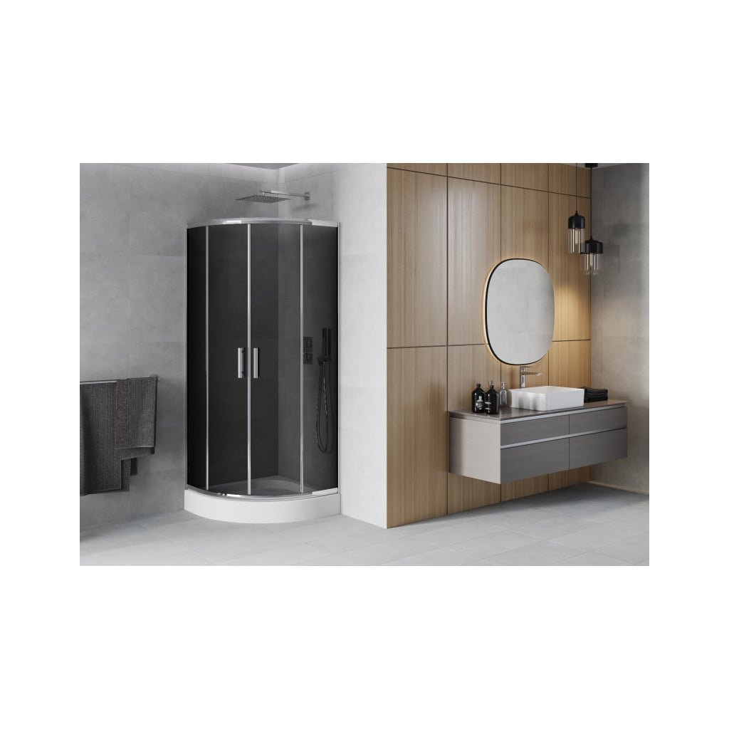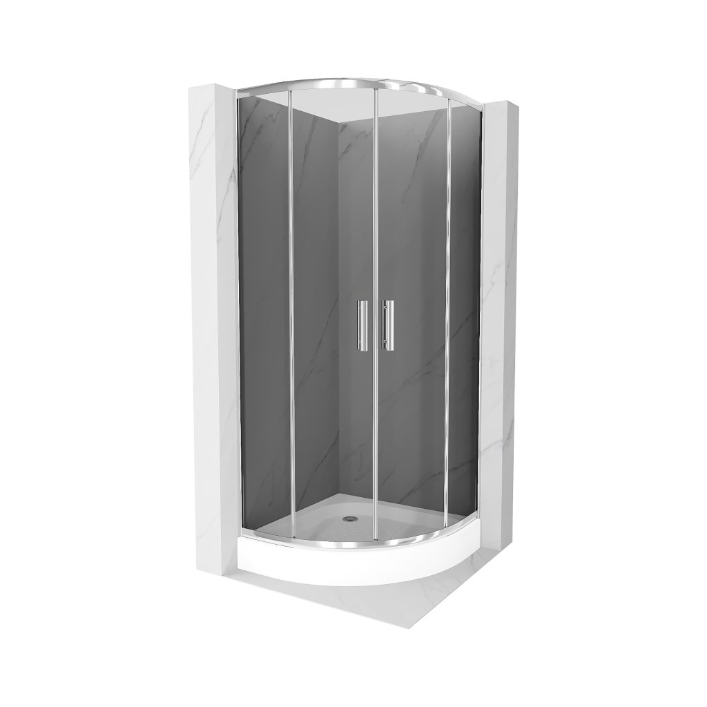 Mexen Rio, čtvrtkruhový sprchový kout s posuvnými dveřmi 80 x 80 cm, 5mm šedé sklo, chromový profil + bílá vysoká sprchová vanička Rio, 863-080-080-01-40-4710