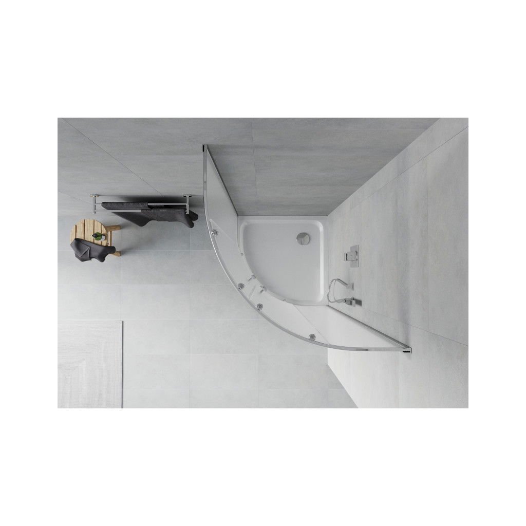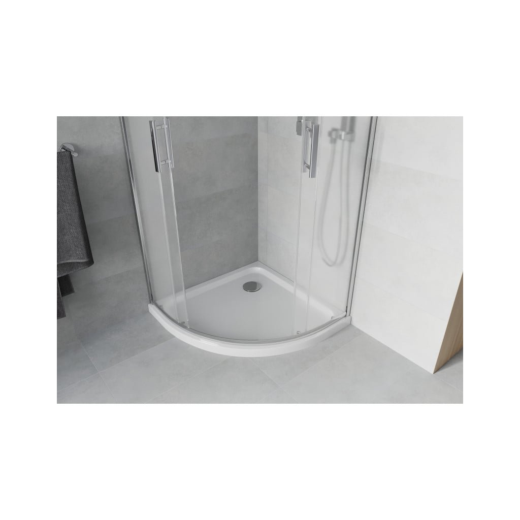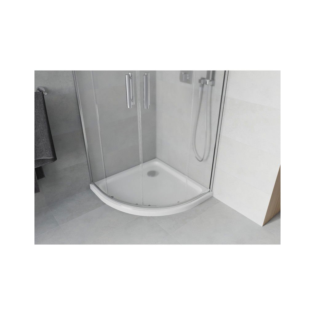Mexen Rio, čtvrtkruhový sprchový kout s posuvnými dveřmi 80 x 80 cm, 5mm sklo námraza, chromový profil + bílá sprchová vanička, 863-080-080-01-30-4110