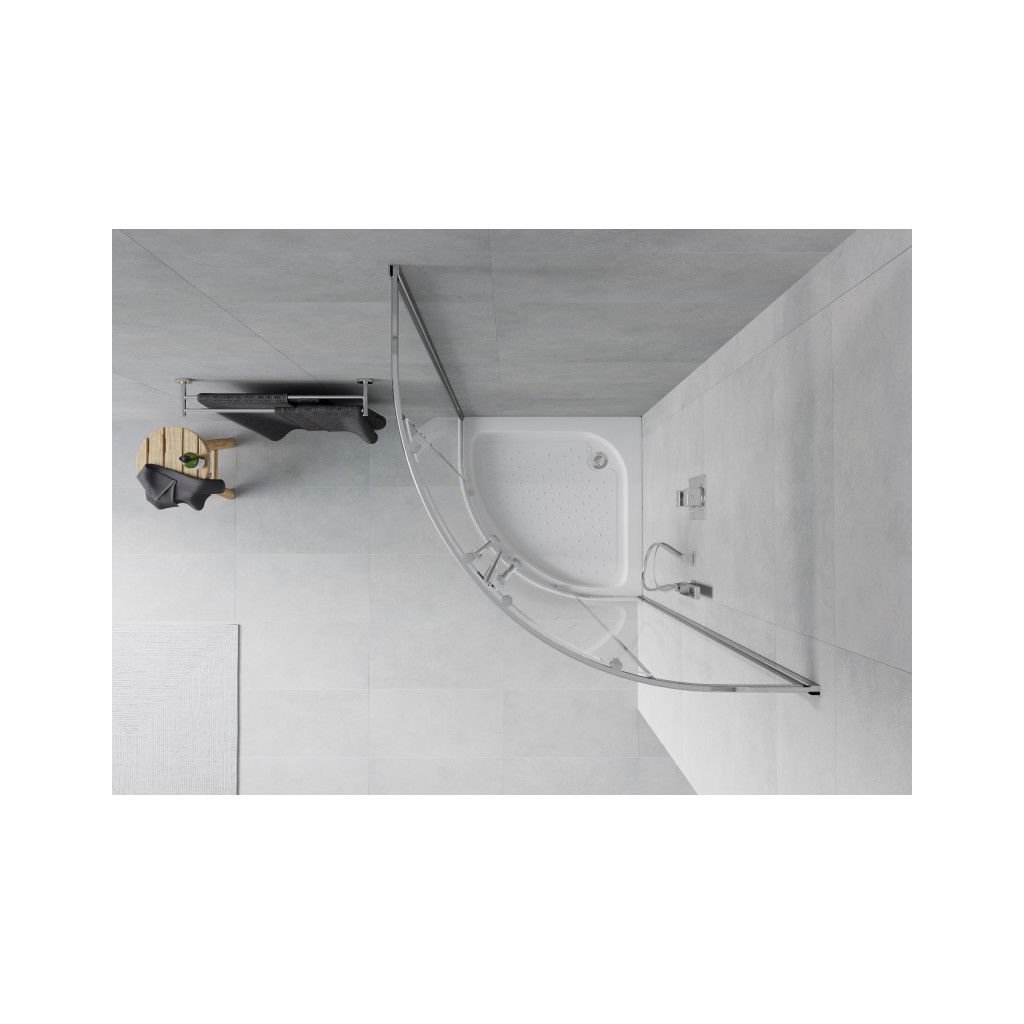 Mexen Rio, čtvrtkruhový sprchový kout s posuvnými dveřmi 90 x 90 cm, 5mm čiré sklo, chromový profil + bílá vysoká sprchová vanička Rio, 863-090-090-01-00-4710
