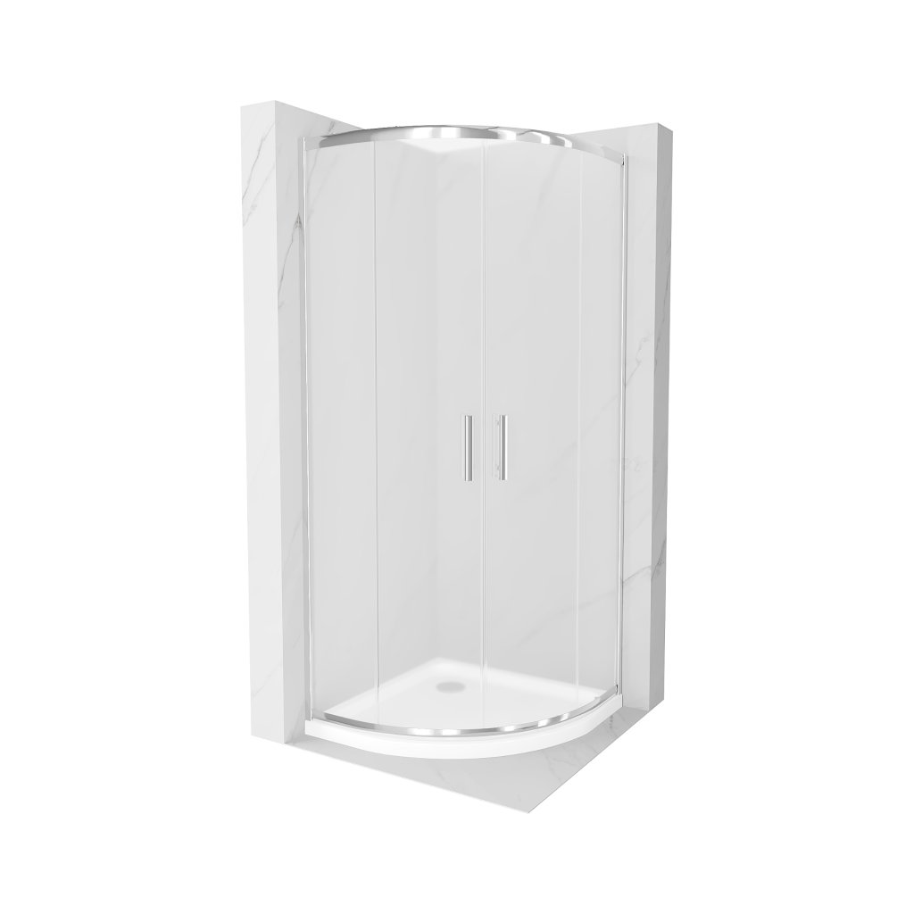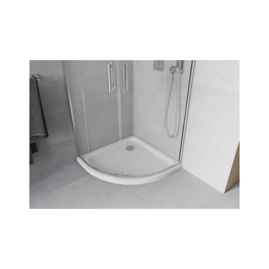 Mexen Rio, čtvrtkruhový sprchový kout s posuvnými dveřmi 90 x 90 cm, 5mm sklo námraza, chromový profil + bílá sprchová vanička, 863-090-090-01-30-4110