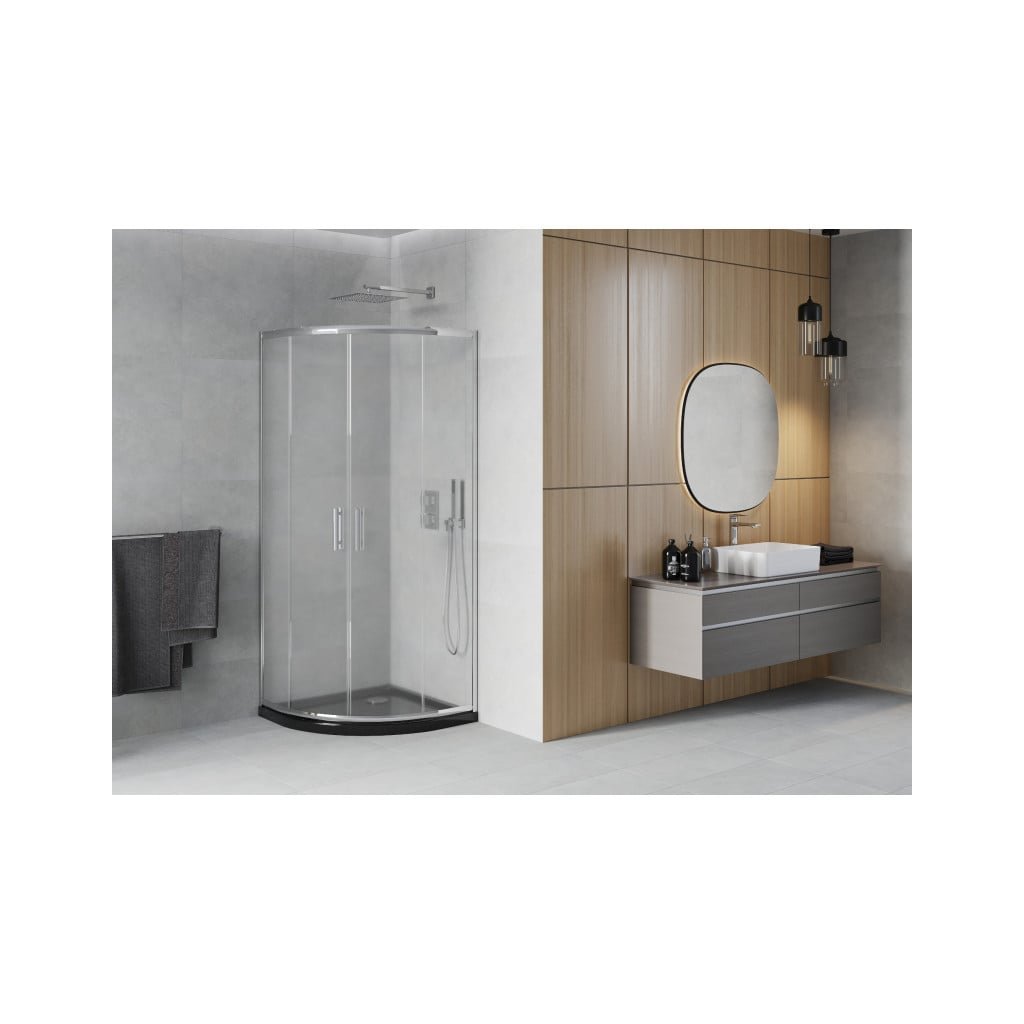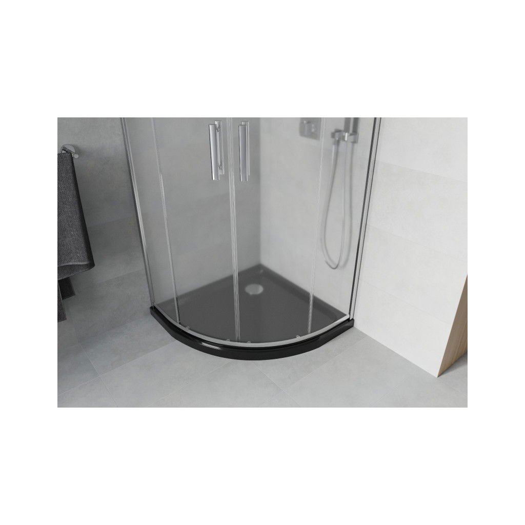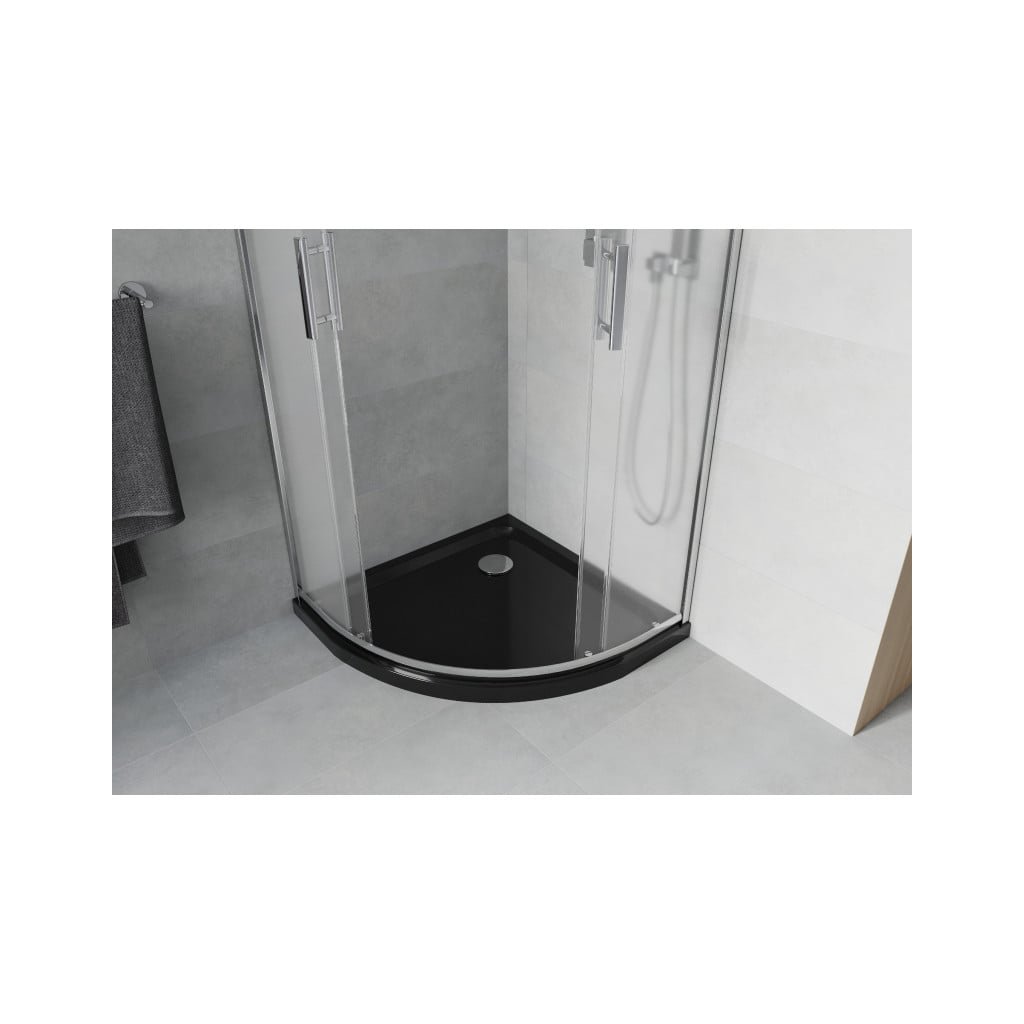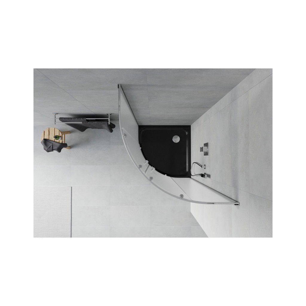 Mexen Rio, čtvrtkruhový sprchový kout s posuvnými dveřmi 90 x 90 cm, 5mm sklo námraza, chromový profil + černá sprchová vanička, 863-090-090-01-30-4170