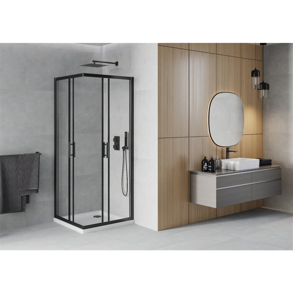 Mexen Rio čtvercový sprchový kout 70 x 70 cm, 5mm sklo, chromový profil-čiré sklo + slim sprchová vanička 5cm, 860-070-070-70-00-4010