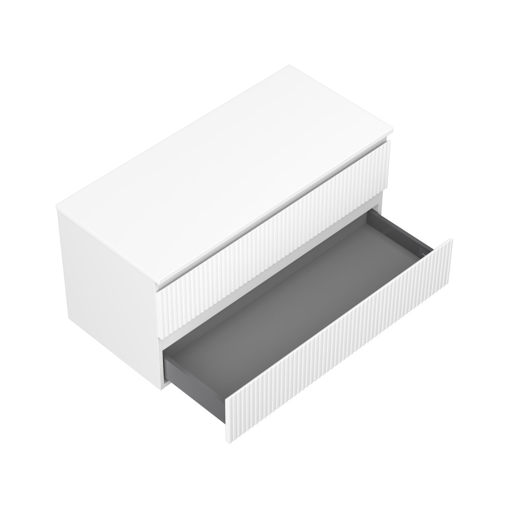 Mexen Rivel, koupelnová skříňka 100 cm s horní částí, 2 zásuvky, drážkovaná, bílá matná, 91A20-10047-2-BFFC01