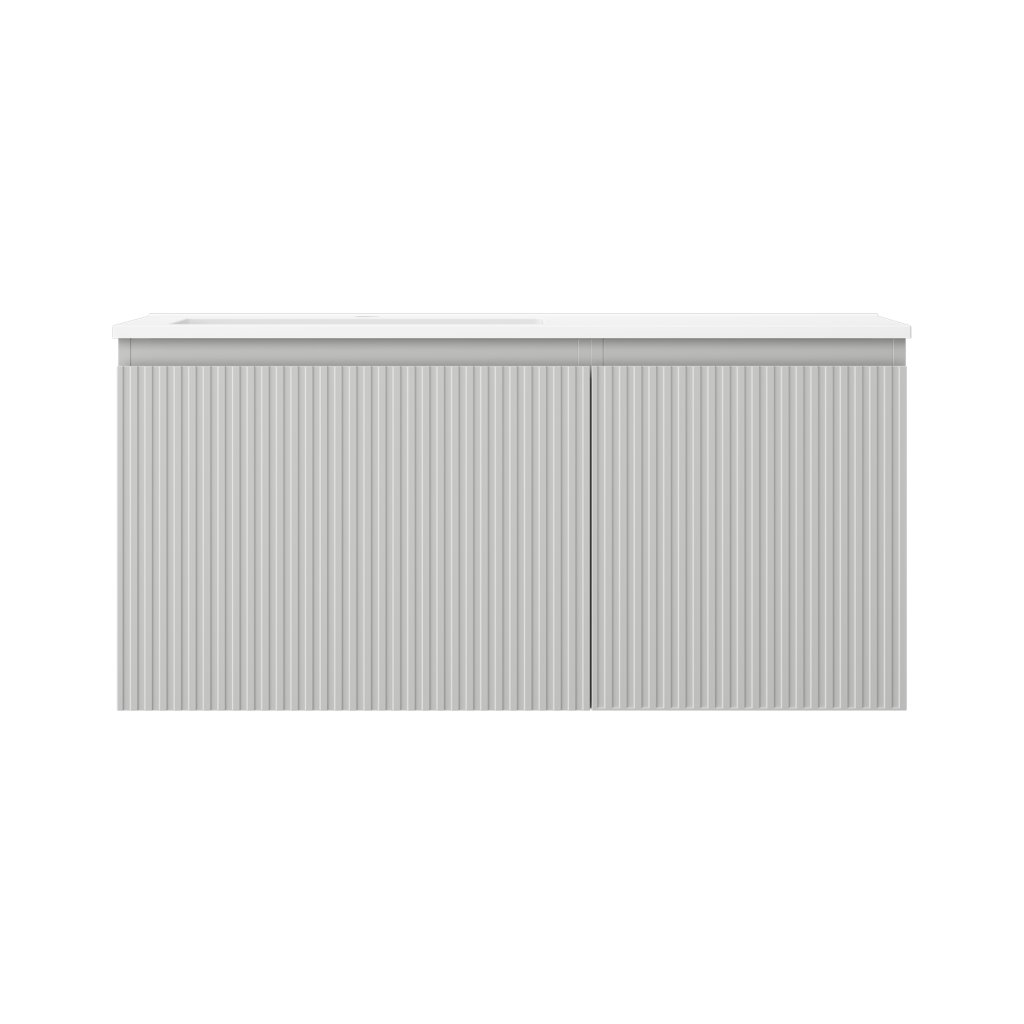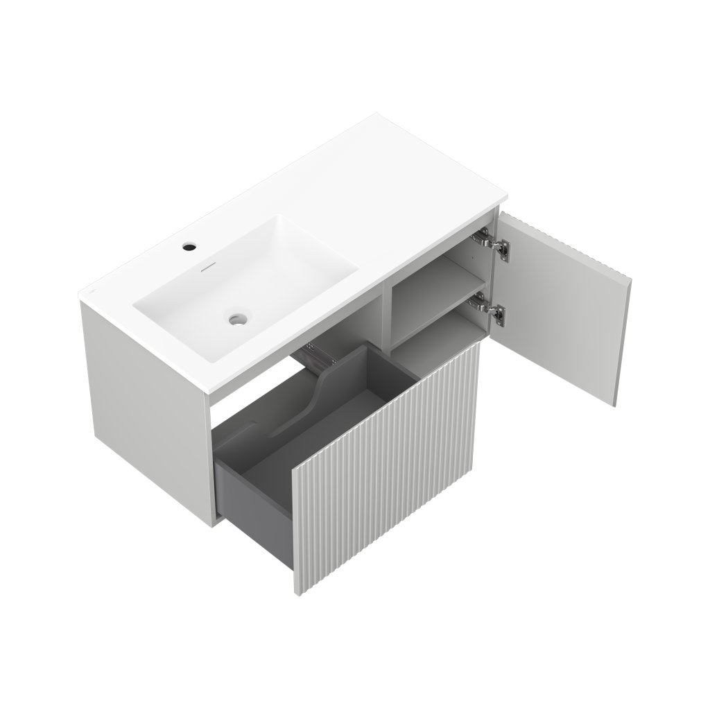 Mexen Rivel, koupelnová skříňka 100 cm s levým umyvadlem Otis, 1S, 1D, drážkovaná, šedá matná/bílá matná - 91A23-10047-3-BBFF62-W18L01