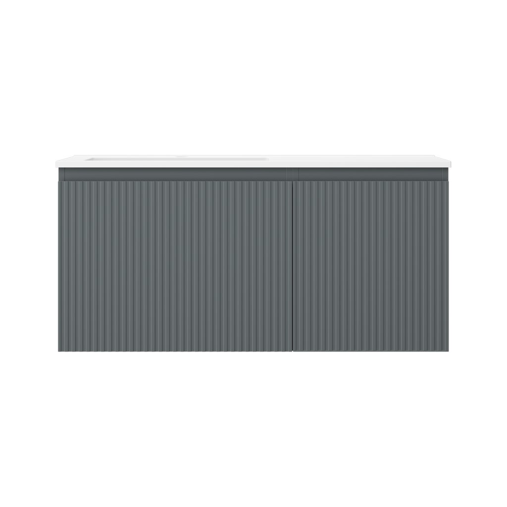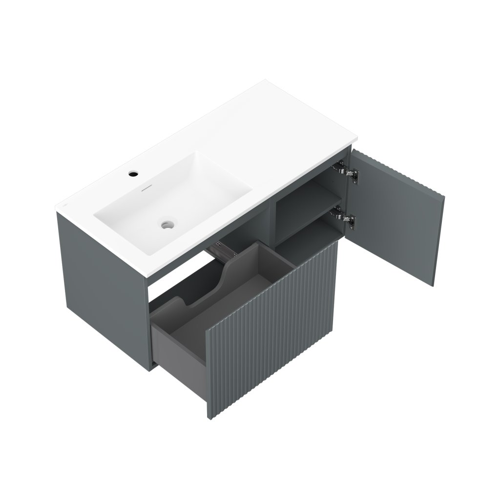 Mexen Rivel, koupelnová skříňka 100 cm s umyvadlem Otis vlevo, 1S, 1D, drážkovaná, grafitová matná/bílá matná, 91A23-10047-3-BBFF66-W18L01