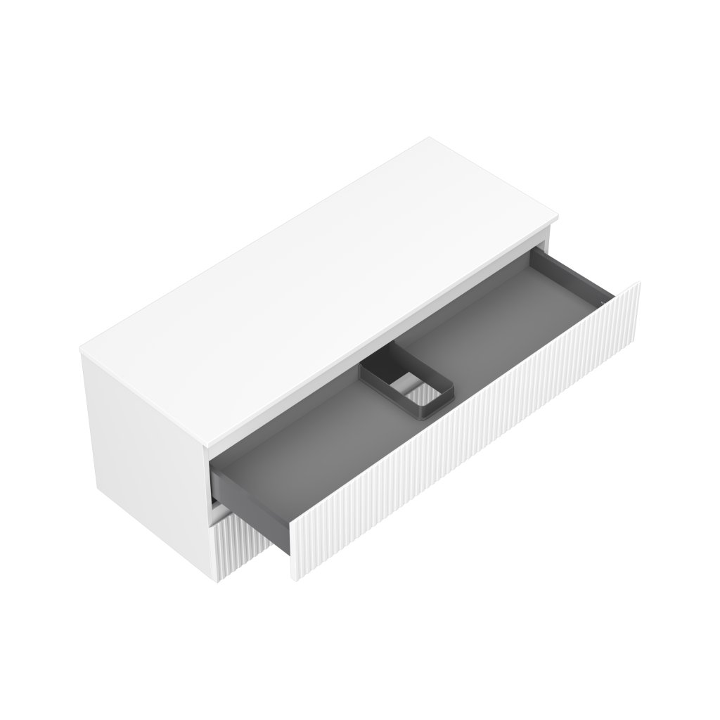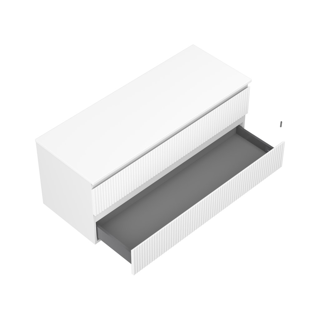Mexen Rivel, koupelnová skříňka 120 cm s pracovní deskou, 2 zásuvky, drážkovaná, bílá matná, 91A20-12047-2-BFFC01
