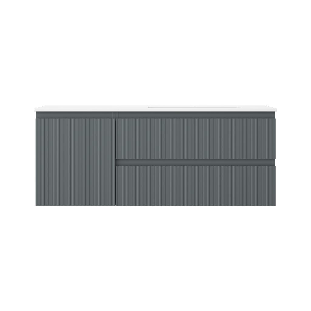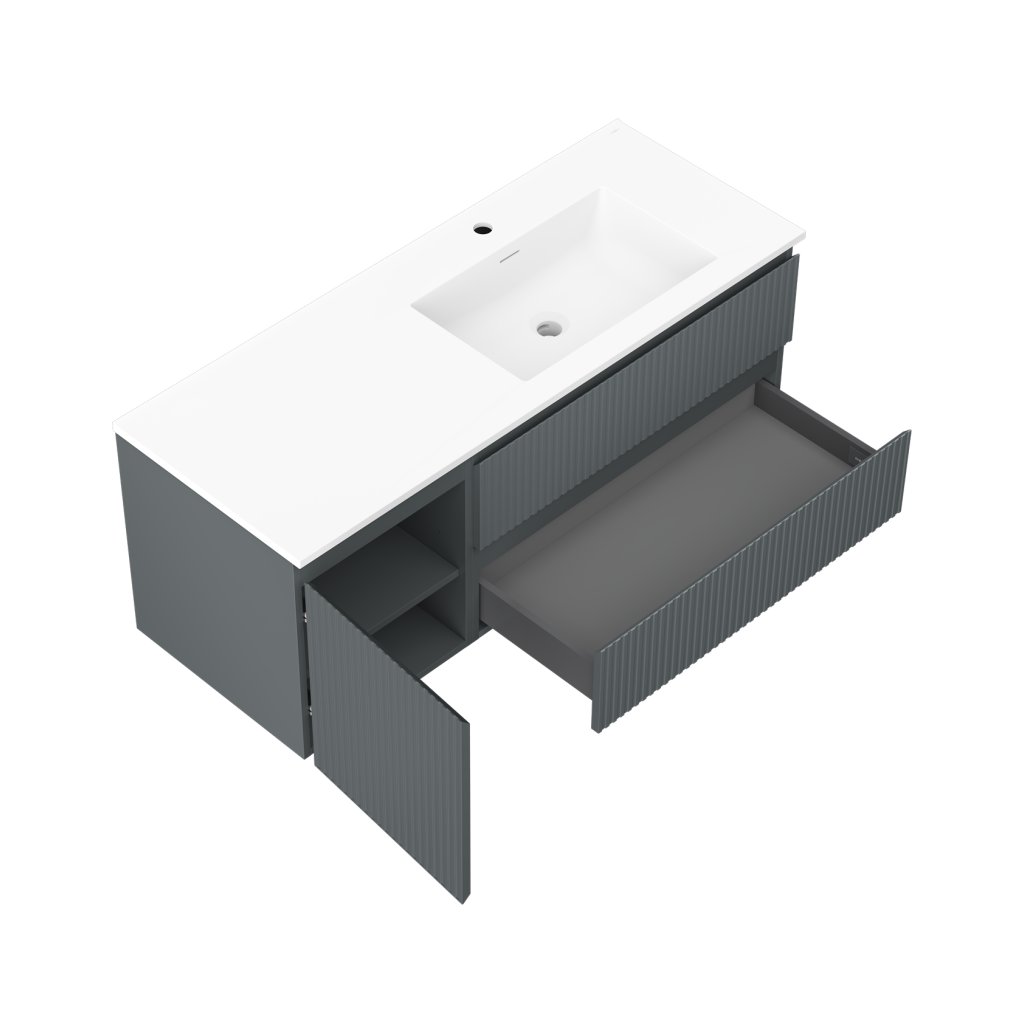 Mexen Rivel, koupelnová skříňka 120 cm s pravým umyvadlem Otis, 2S, 1D, drážkovaná, grafitová/bílá matná, 91A23-12047-3-BBFFF66-W18P01