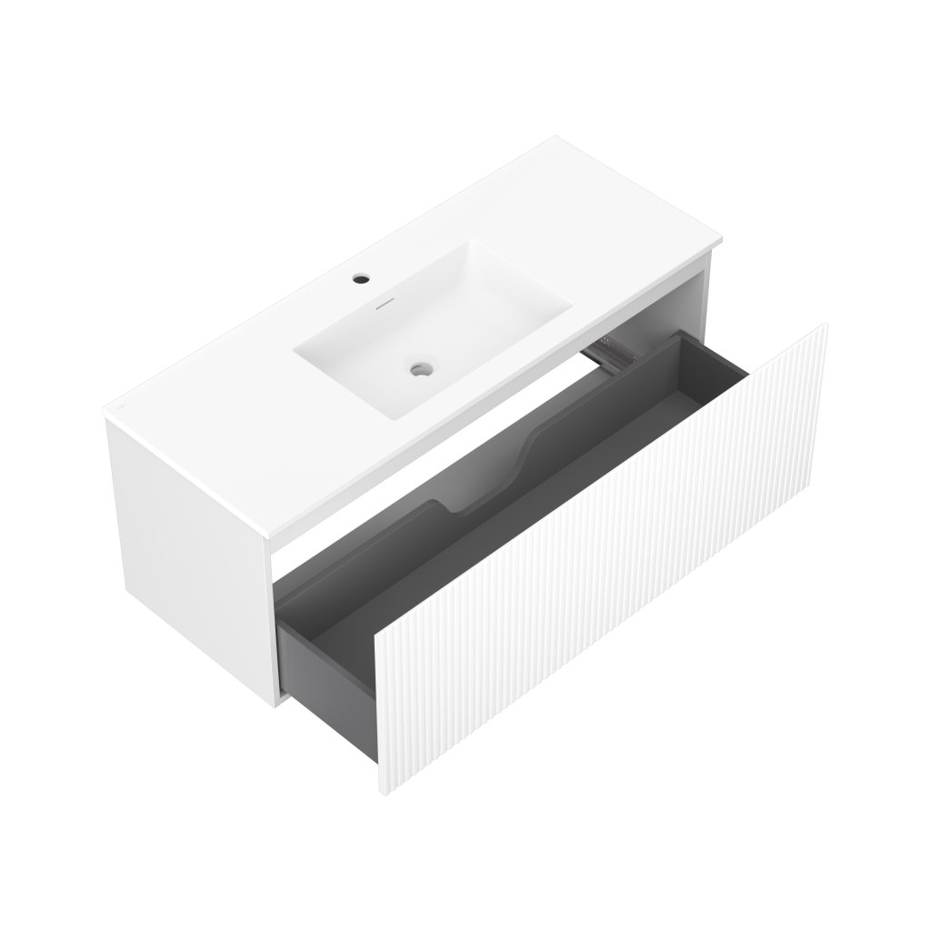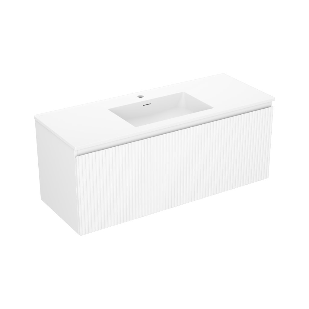 Mexen Rivel, koupelnová skříňka 120 cm s umyvadlem Otis, 1 zásuvka, drážkovaná, bílá matná, 91A20-12047-1-BF01-W18M01