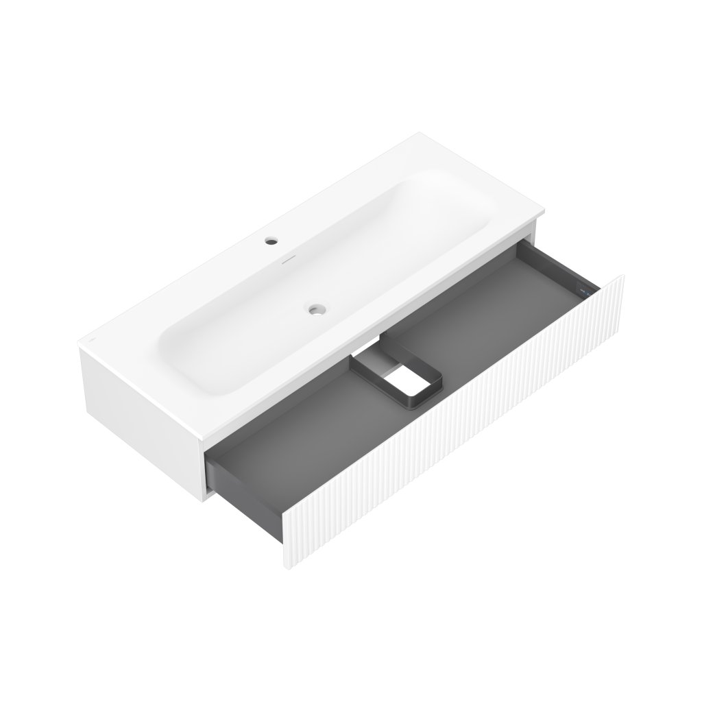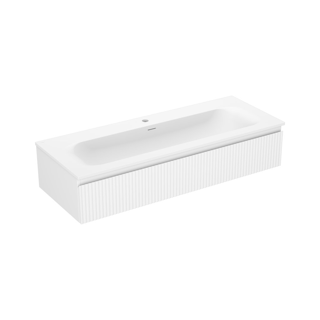 Mexen Rivel, koupelnová skříňka 120 cm s umyvadlem Vela, 1 zásuvka, drážkovaná, bílá matná, 91A20-12023-1-BF01-W23M01