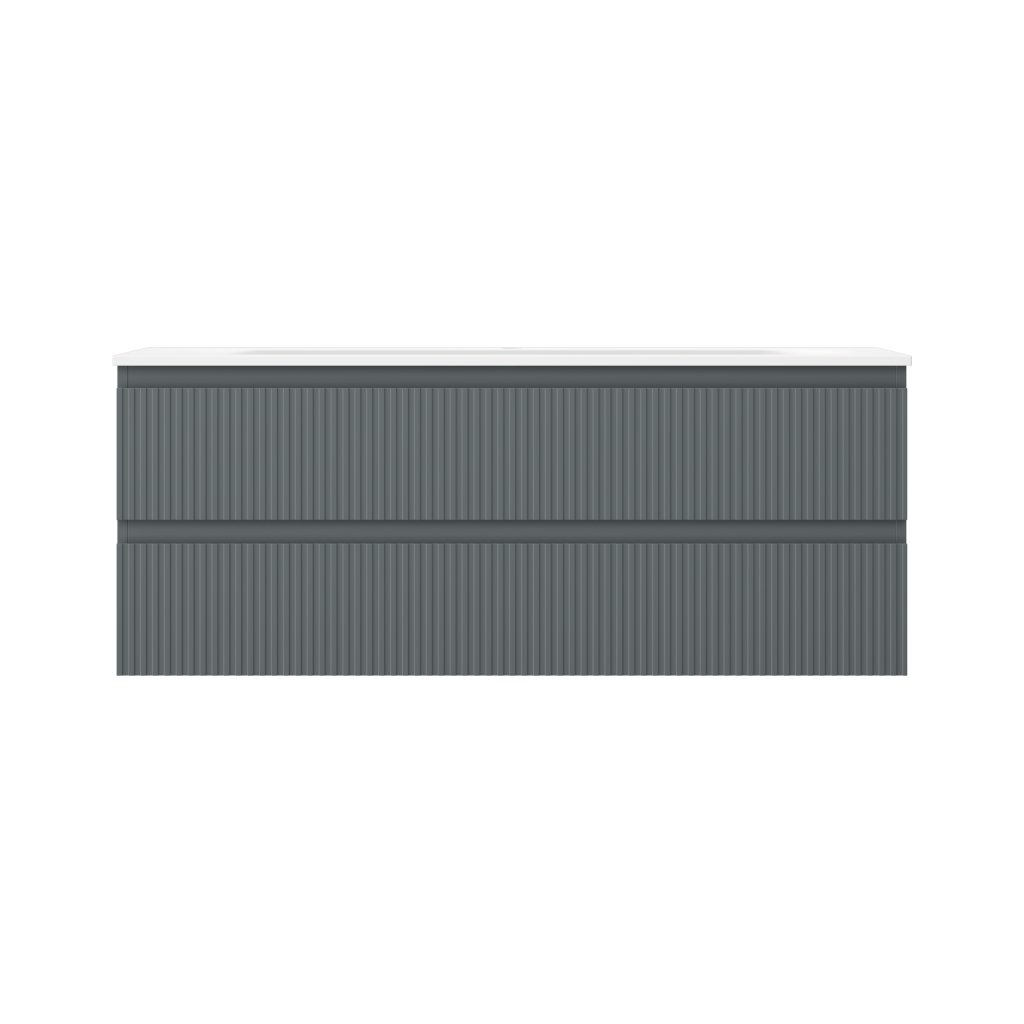 Mexen Rivel, koupelnová skříňka 120 cm s umyvadlem Vela, 2 zásuvky, drážkovaná, grafitová matná/bílá matná, 91A20-12047-2-BFF66-W23M