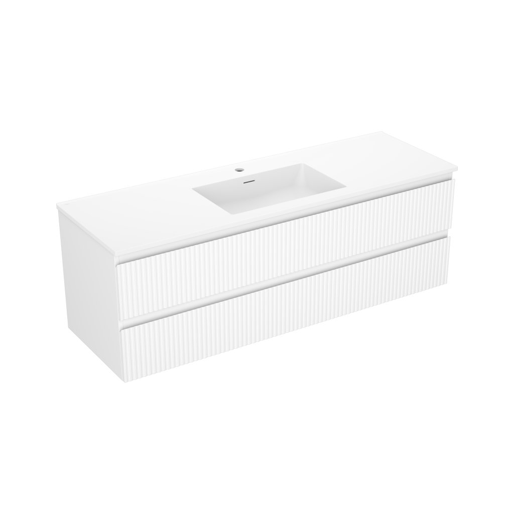 Mexen Rivel, koupelnová skříňka 140 cm s umyvadlem Otis, 2 zásuvky, drážkovaná, bílá matná, 91A20-14047-2-BFF01-W18M01