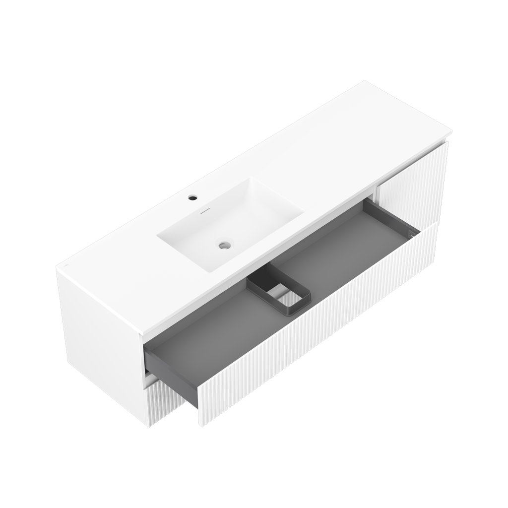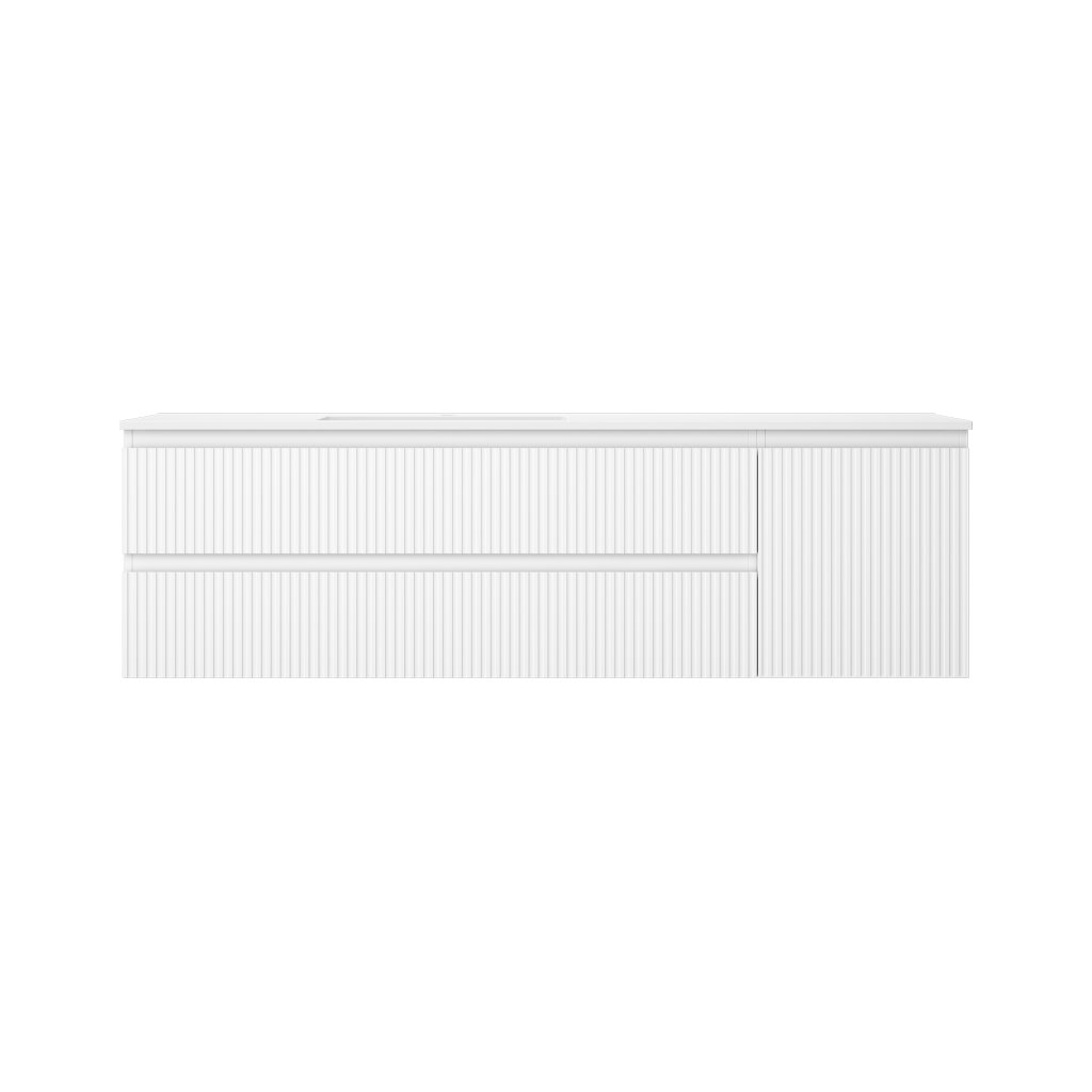 Mexen Rivel, koupelnová skříňka 160 cm s levým umyvadlem Otis, 2S, 1D, drážkovaná, bílá matná, 91A23-16047-3-BBFFF01-W18L01