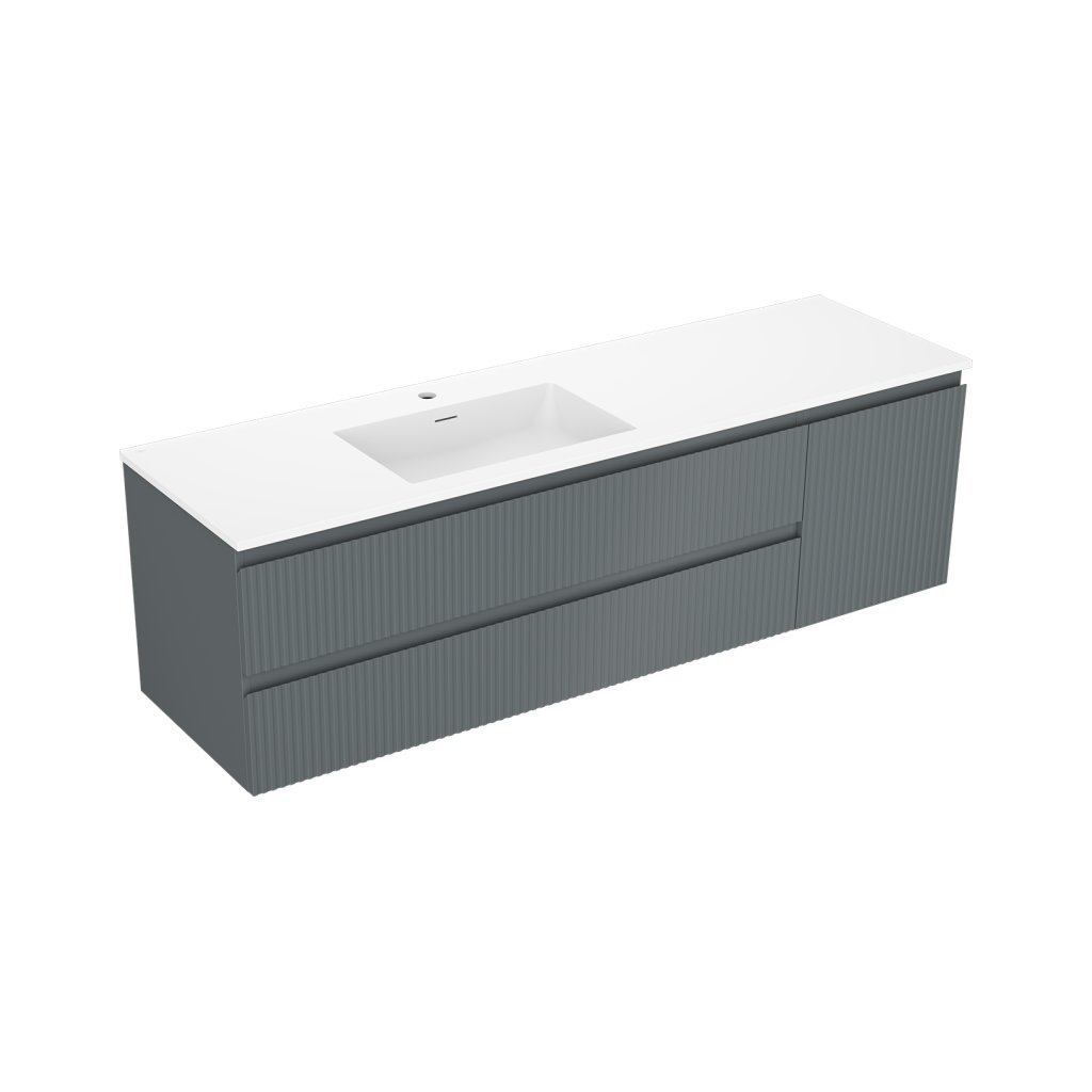 Mexen Rivel, koupelnová skříňka 160 cm s levým umyvadlem Otis, 2S, 1D, drážkovaná, grafitová/bílá matná, 91A23-16047-3-BBFFF66-W18L01