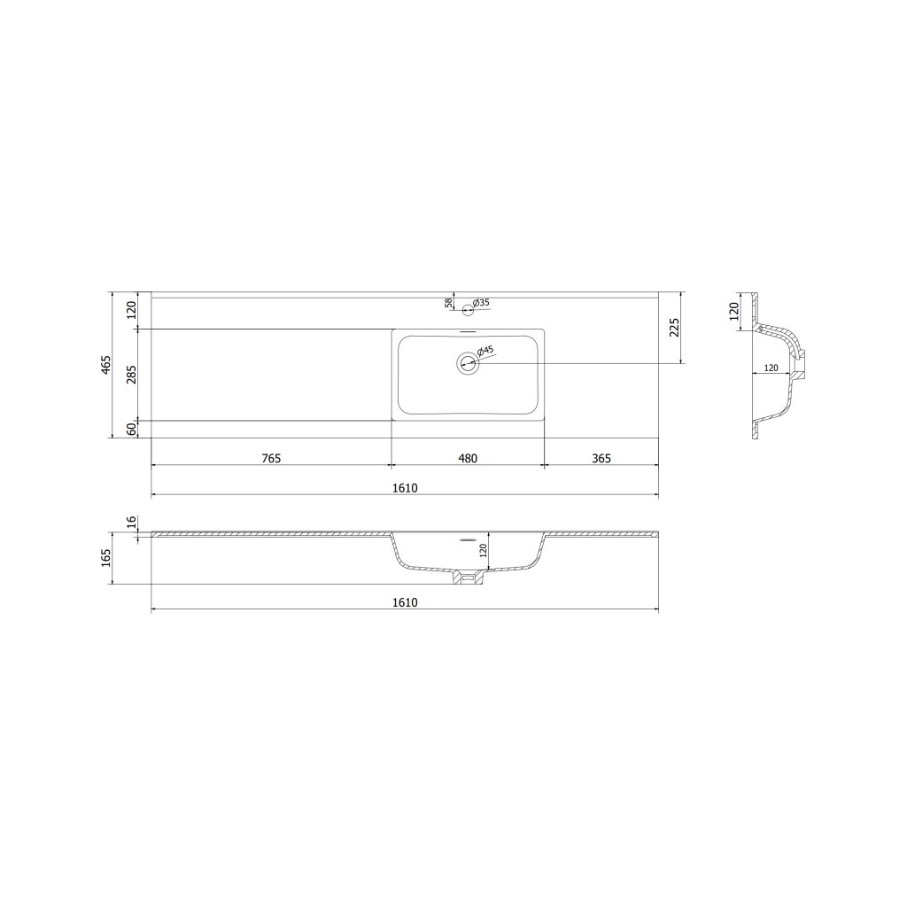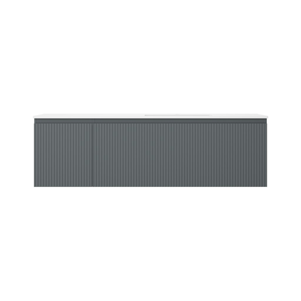 Mexen Rivel, koupelnová skříňka 160 cm s pravým umyvadlem Otis, 1S, 1D, drážkovaná, grafitová/bílá matná, 91A23-16047-3-BBFF66-W18P01