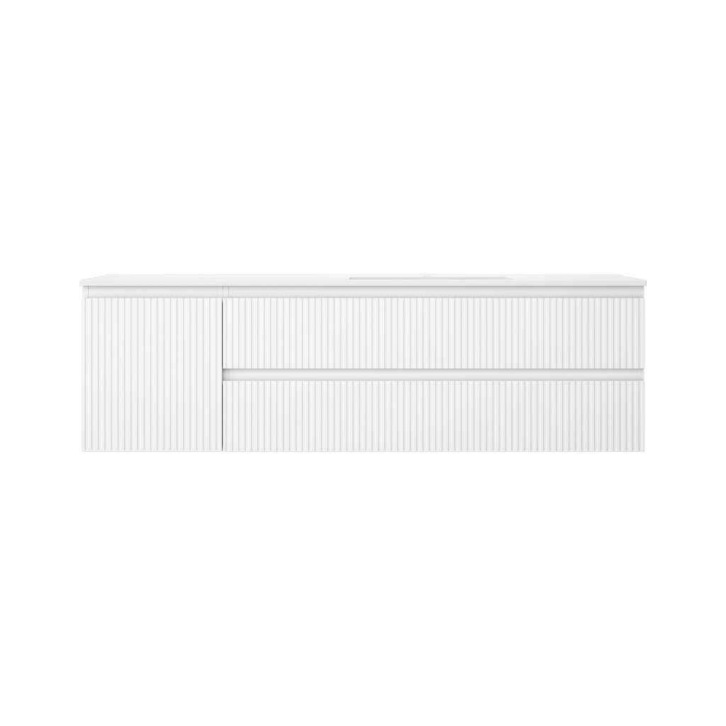 Mexen Rivel, koupelnová skříňka 160 cm s pravým umyvadlem Otis, 2S, 1D, drážkovaná, bílá matná, 91A23-16047-3-BBFFF01-W18P01