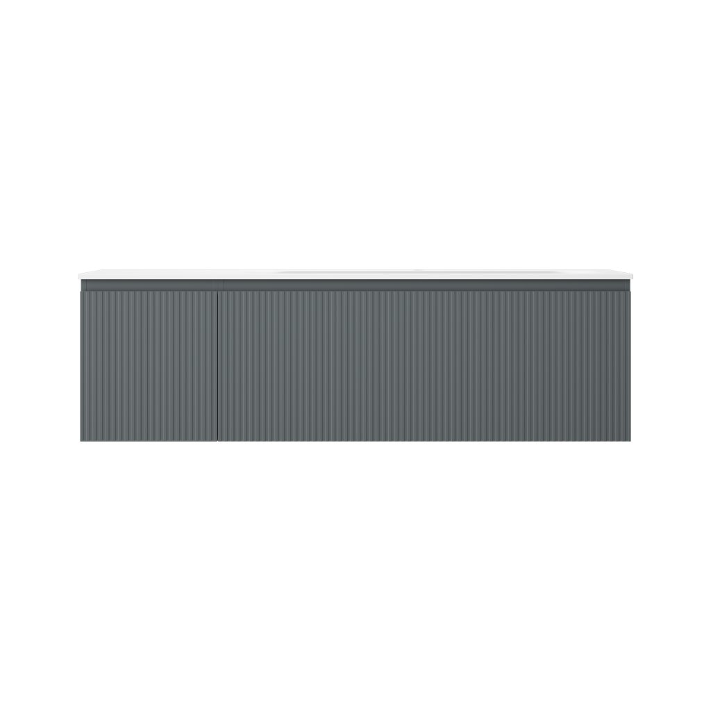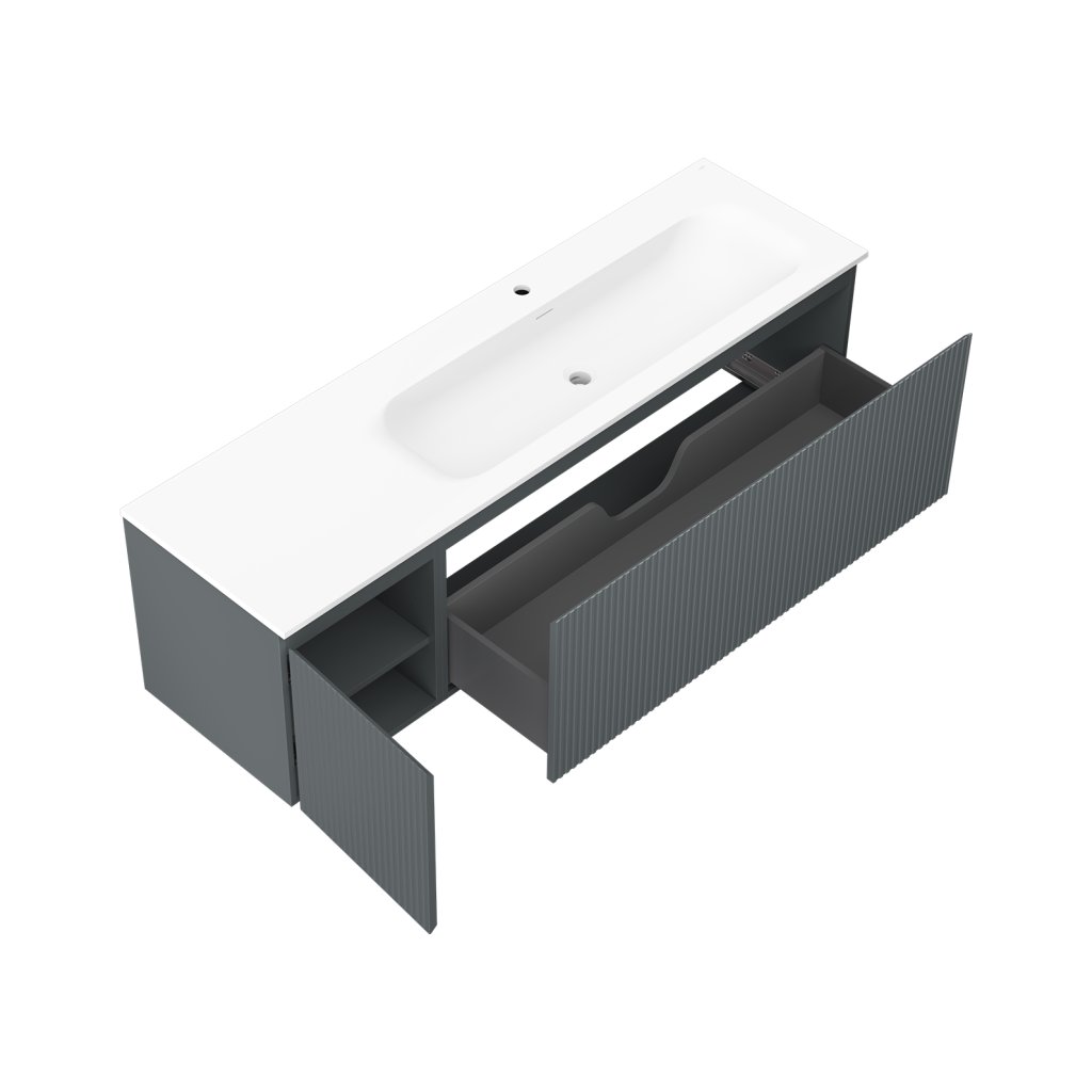 Mexen Rivel, koupelnová skříňka 160 cm s pravým umyvadlem Vela, 1S, 1D, drážkovaná, grafitová/bílá matná, 91A23-16047-3-BBFF66-W23P01