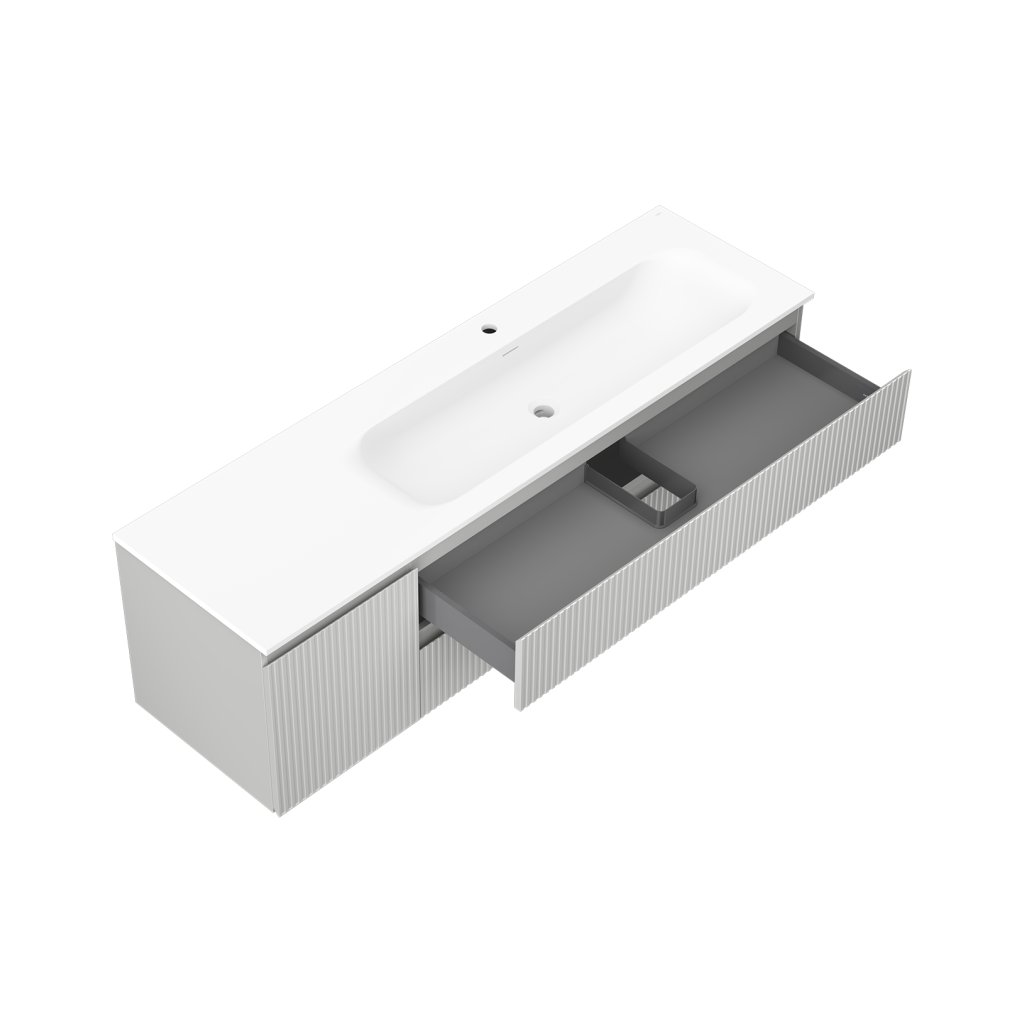 Mexen Rivel, koupelnová skříňka 160 cm s pravým umyvadlem Vela, 2S, 1D, drážkovaná, šedá/bílá matná, 91A23-16047-3-BBFFF62-W23P01