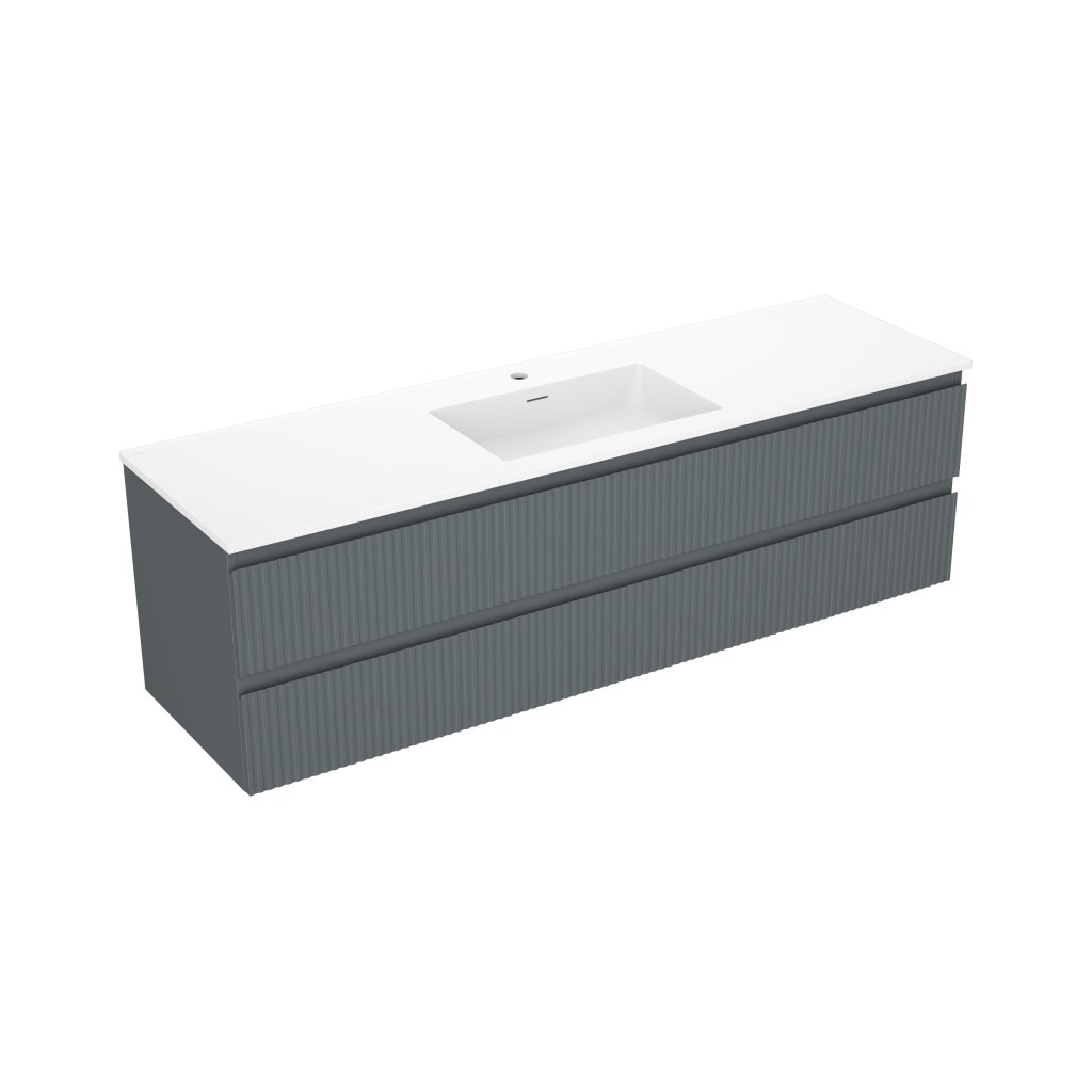 Mexen Rivel, koupelnová skříňka 160 cm s umyvadlem Otis, 2 zásuvky, drážkovaná, grafitová matná/bílá matná, 91A20-16047-2-BFF66-W18M