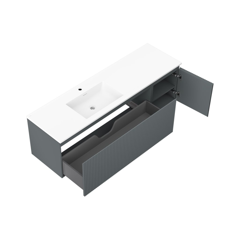 Mexen Rivel, koupelnová skříňka 160 cm s umyvadlem Otis vlevo, 1S, 1D, drážkovaná, grafitová matná/bílá matná, 91A23-16047-3-BBFF66-W18L01