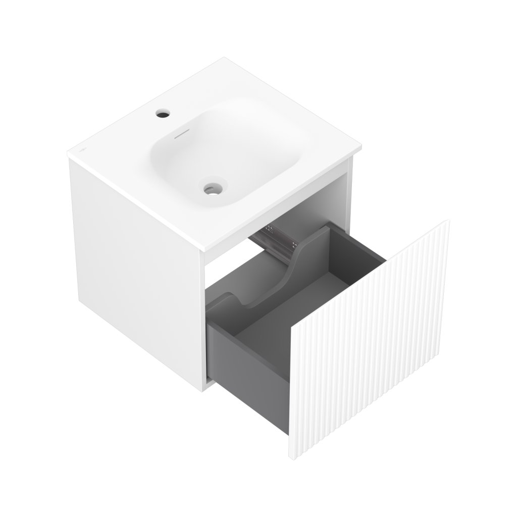 Mexen Rivel, koupelnová skříňka 50 cm s umyvadlem Vela, 1 zásuvka, drážkovaná, bílá matná, 91A20-05047-1-BF01-W23M01