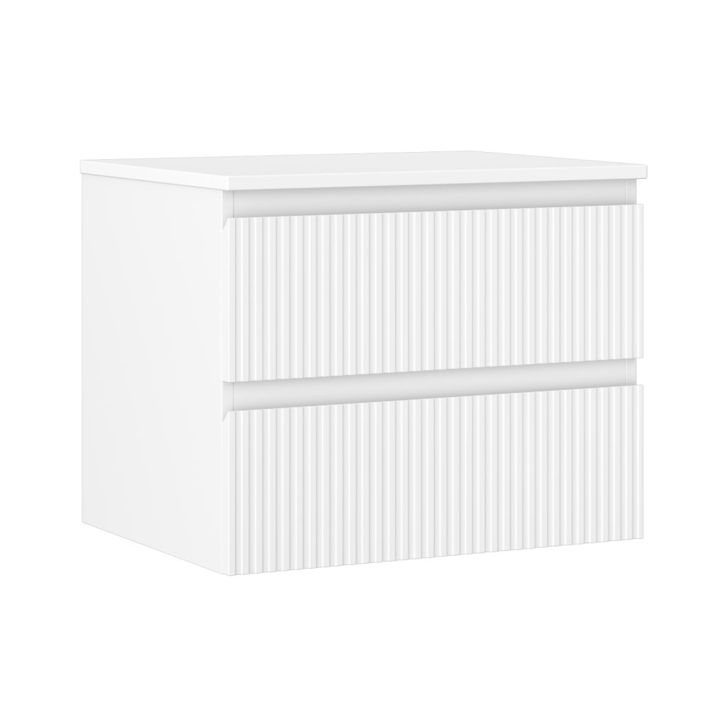 Mexen Rivel, koupelnová skříňka 60 cm s pracovní deskou, 2 zásuvky, drážkovaná, bílá matná, 91A20-06047-2-BFFC01