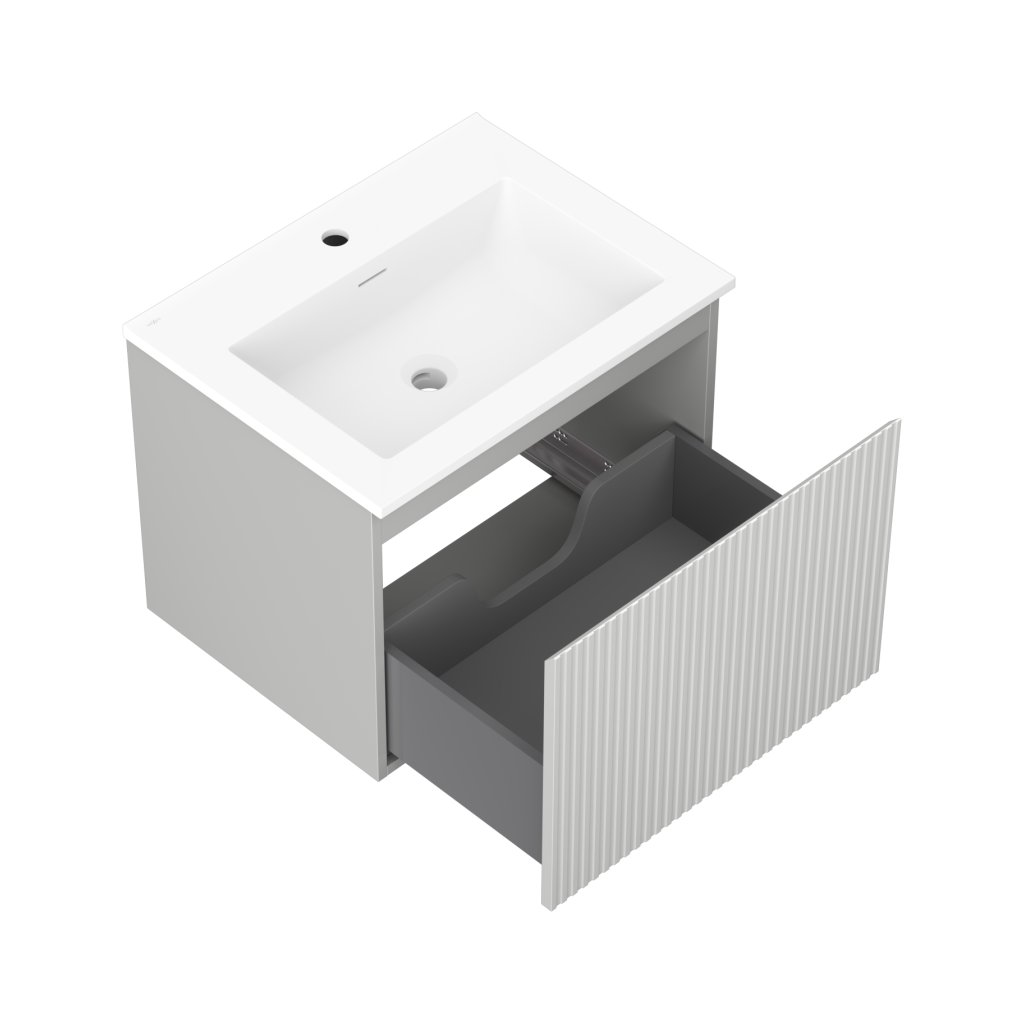 Mexen Rivel, koupelnová skříňka 60 cm s umyvadlem Otis, 1 zásuvka, drážkovaná, šedá matná/bílá, 91A20-06047-1-BF62-W18M01