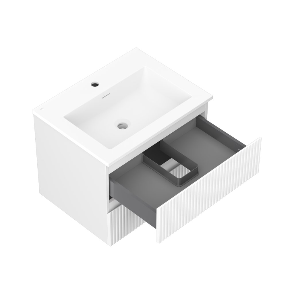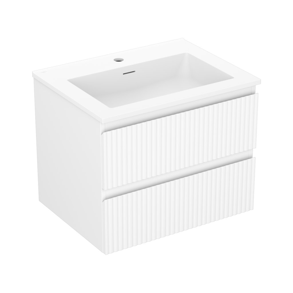 Mexen Rivel, koupelnová skříňka 60 cm s umyvadlem Otis, 2 zásuvky, drážkovaná, bílá matná, 91A20-06047-2-BFF01-W18M01