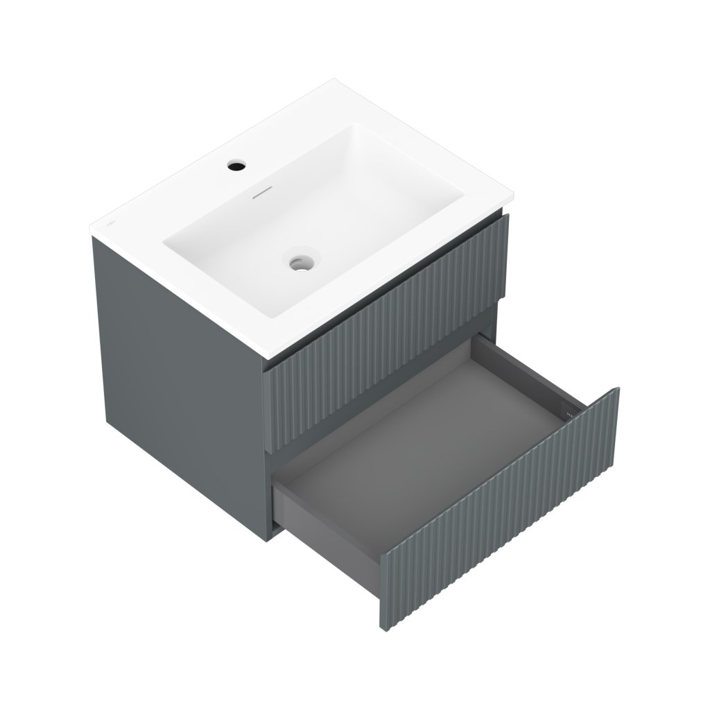 Mexen Rivel, koupelnová skříňka 60 cm s umyvadlem Otis, 2 zásuvky, drážkovaná, grafitová matná/bílá matná, 91A20-06047-2-BFF66-W18M0