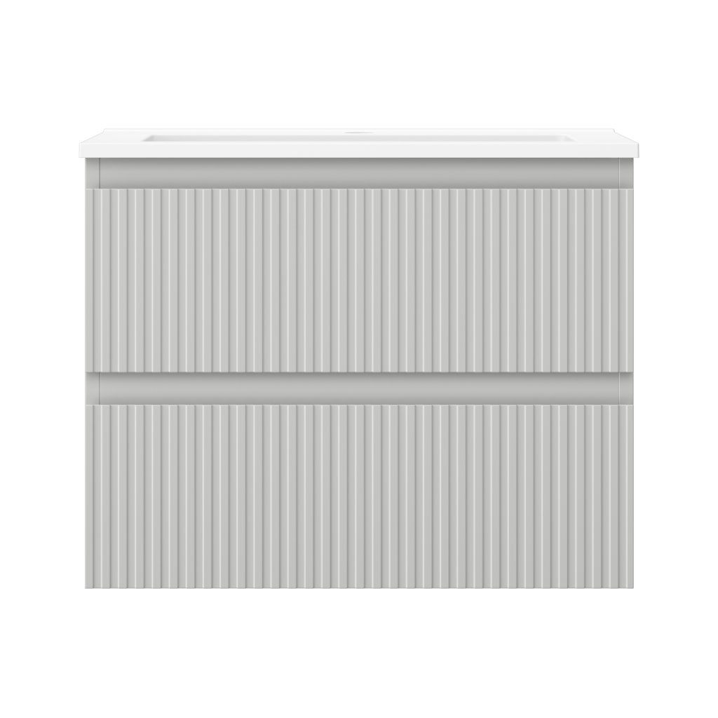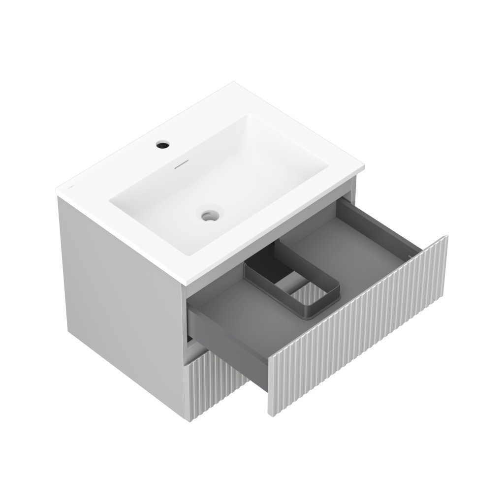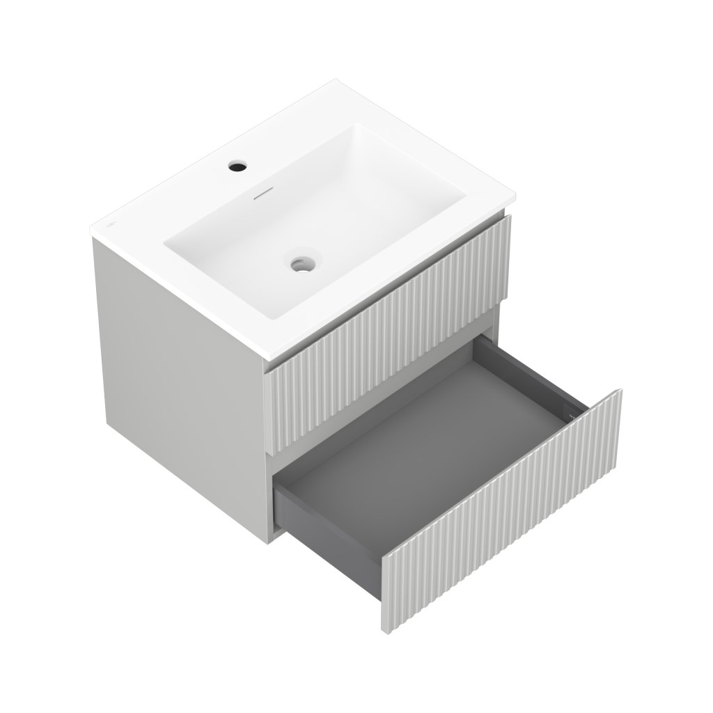 Mexen Rivel, koupelnová skříňka 60 cm s umyvadlem Otis, 2 zásuvky, drážkovaná, šedá matná/bílá, 91A20-06047-2-BFF62-W18M01