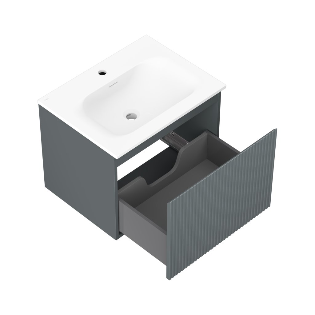Mexen Rivel, koupelnová skříňka 60 cm s umyvadlem Vela, 1 zásuvka, drážkovaná, grafitová matná/bílá matná, 91A20-06047-1-BF66-W23M01