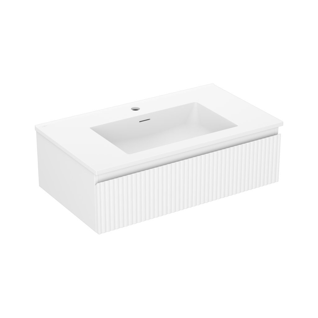 Mexen Rivel, koupelnová skříňka 80 cm s umyvadlem Otis, 1 zásuvka, drážkovaná, bílá matná, 91A20-08023-1-BF01-W18M01