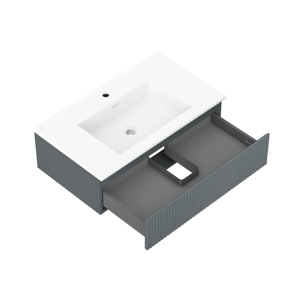 Mexen Rivel, koupelnová skříňka 80 cm s umyvadlem Otis, 1 zásuvka, drážkovaná, grafitová matná/bílá matná, 91A20-08023-1-BF66-W18M01