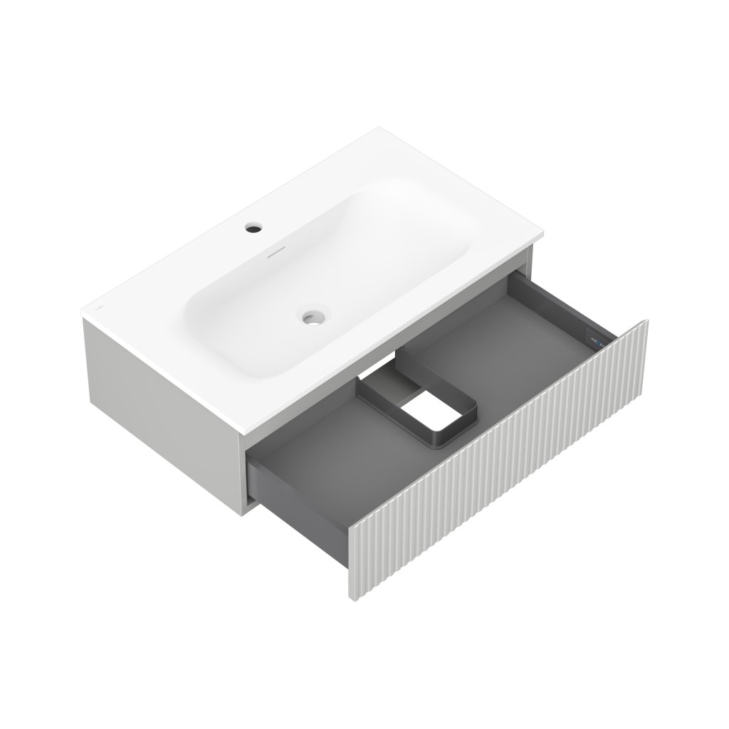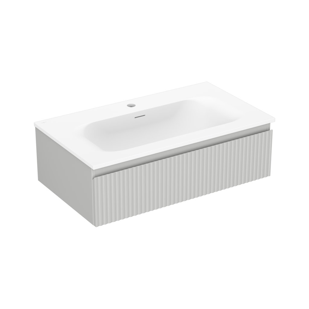Mexen Rivel, koupelnová skříňka 80 cm s umyvadlem Vela, 1 zásuvka, drážkovaná, šedá matná/bílá matná, 91A20-08023-1-BF62-W23M01