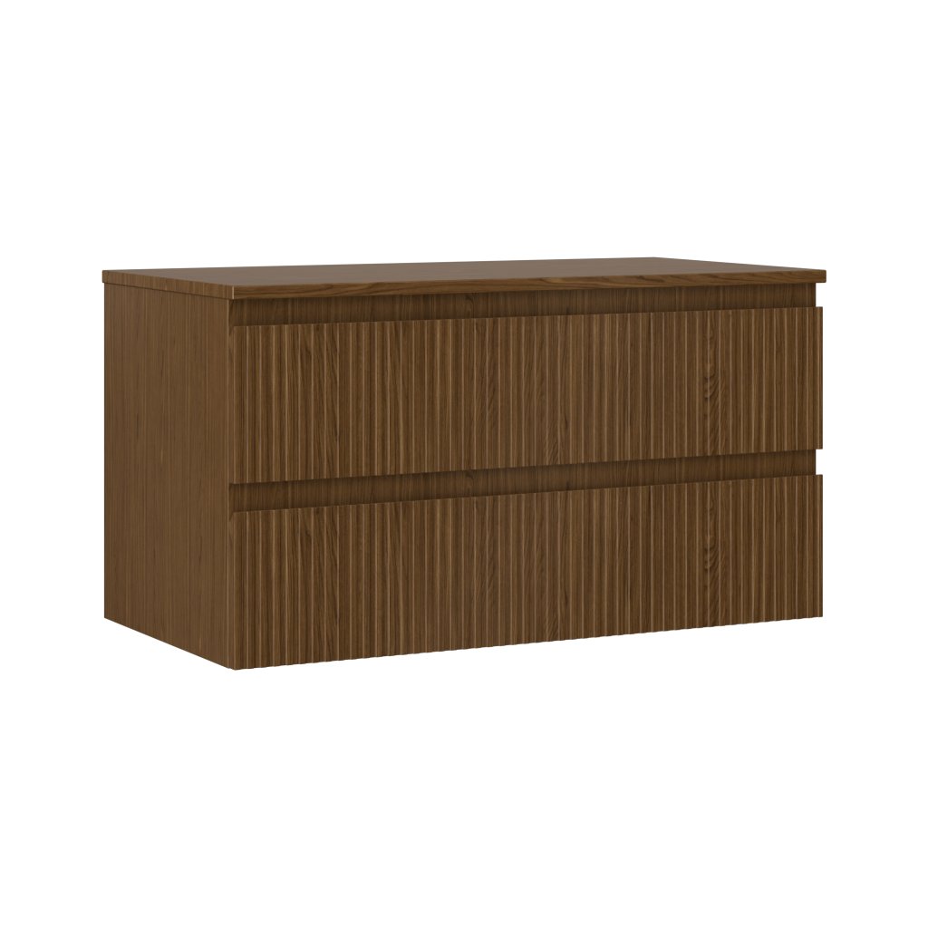 Mexen Rivel, koupelnová skříňka 90 cm s horní částí, 2 zásuvky, drážkovaná, ořech, 91A20-09047-2-BFFC86