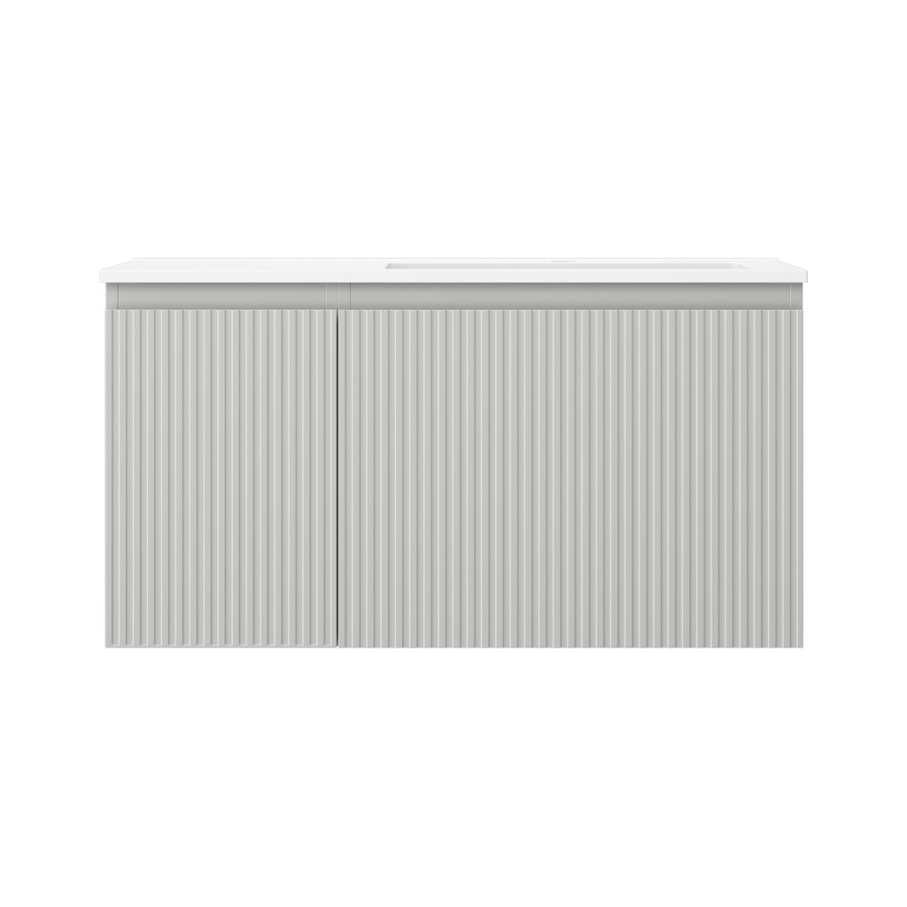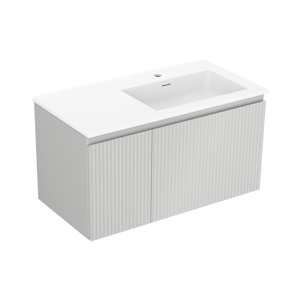 Mexen Rivel, koupelnová skříňka 90 cm s pravým umyvadlem Otis, 1S, 1D, drážkovaná, šedá matná/bílá matná - 91A23-09047-3-BBFF62-W18P01