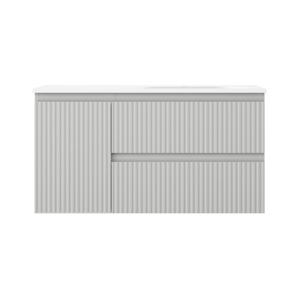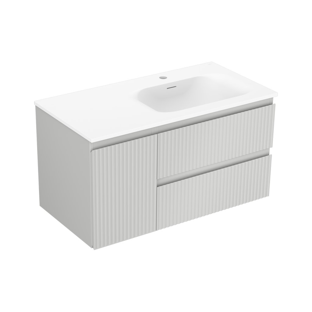 Mexen Rivel, koupelnová skříňka 90 cm s pravým umyvadlem Vela, 2S, 1D, drážkovaná, šedá matná/bílá matná - 91A23-09047-3-BBFFF62-W23P01