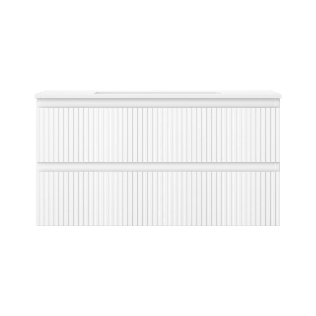 Mexen Rivel, koupelnová skříňka 90 cm s umyvadlem Otis, 2 zásuvky, drážkovaná, bílá matná, 91A20-09047-2-BFF01-W18M01