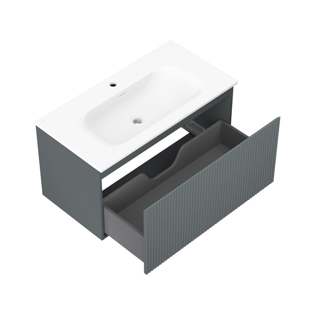Mexen Rivel, koupelnová skříňka 90 cm s umyvadlem Vela, 1 zásuvka, drážkovaná, grafitová matná/bílá matná, 91A20-09047-1-BF66-W23M01