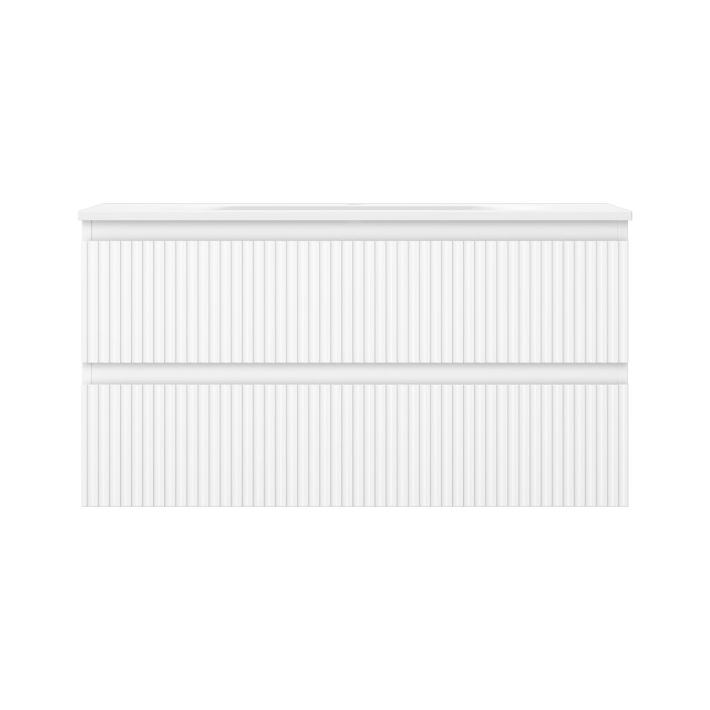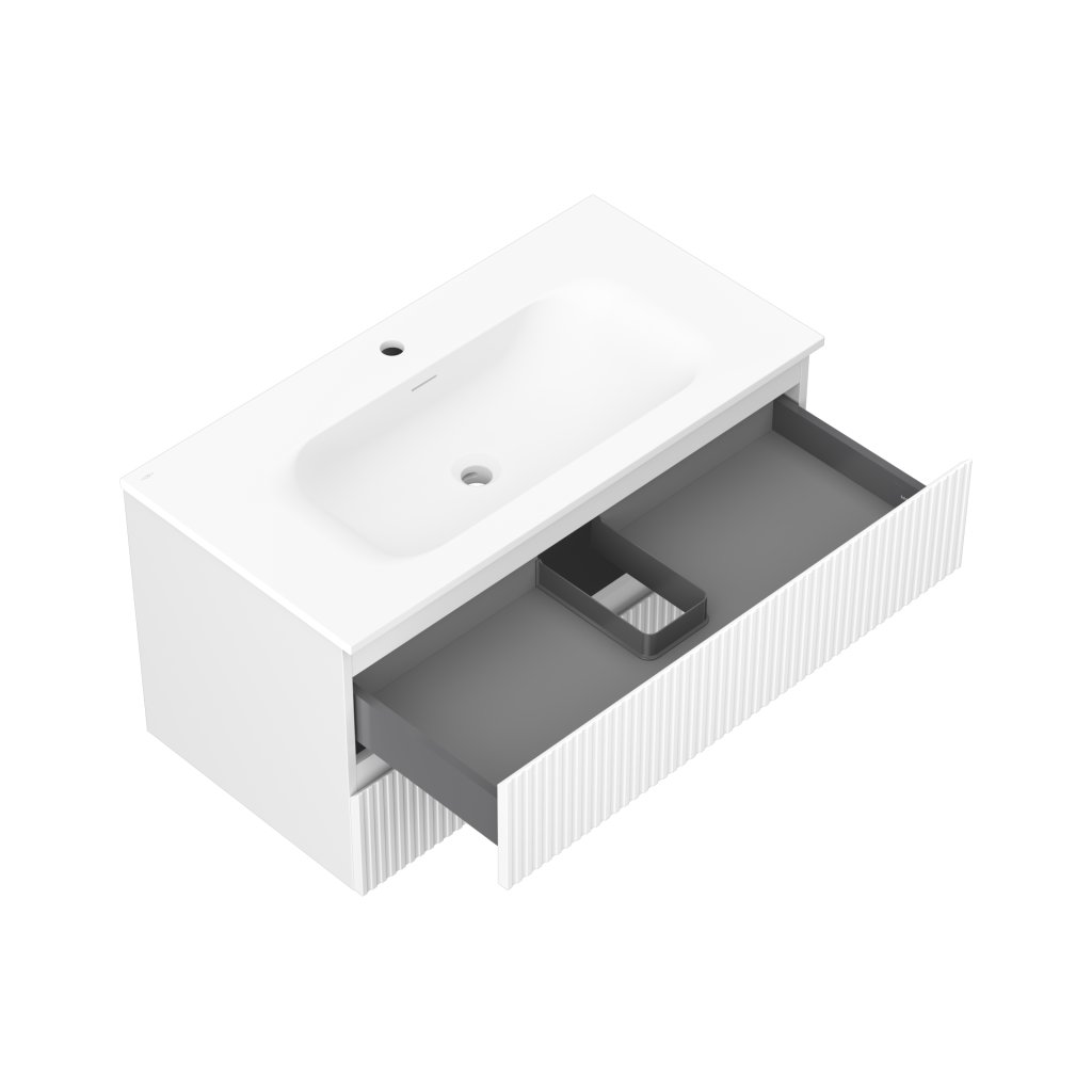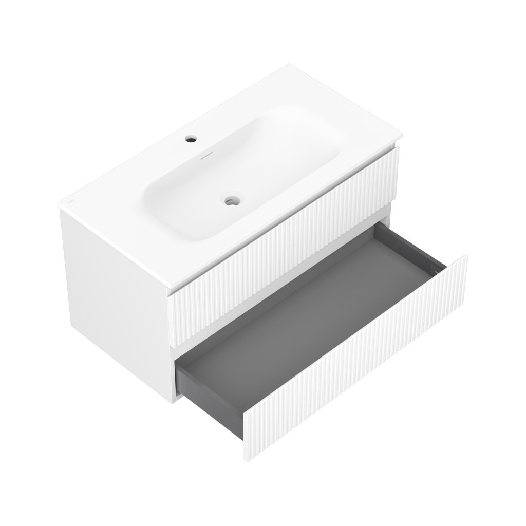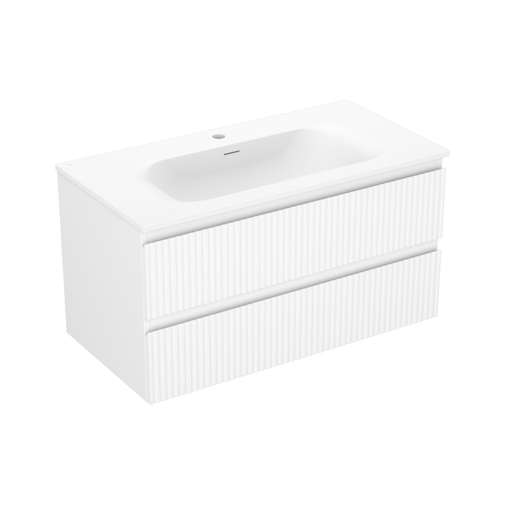 Mexen Rivel, koupelnová skříňka 90 cm s umyvadlem Vela, 2 zásuvky, drážkovaná, bílá matná, 91A20-09047-2-BFF01-W23M01