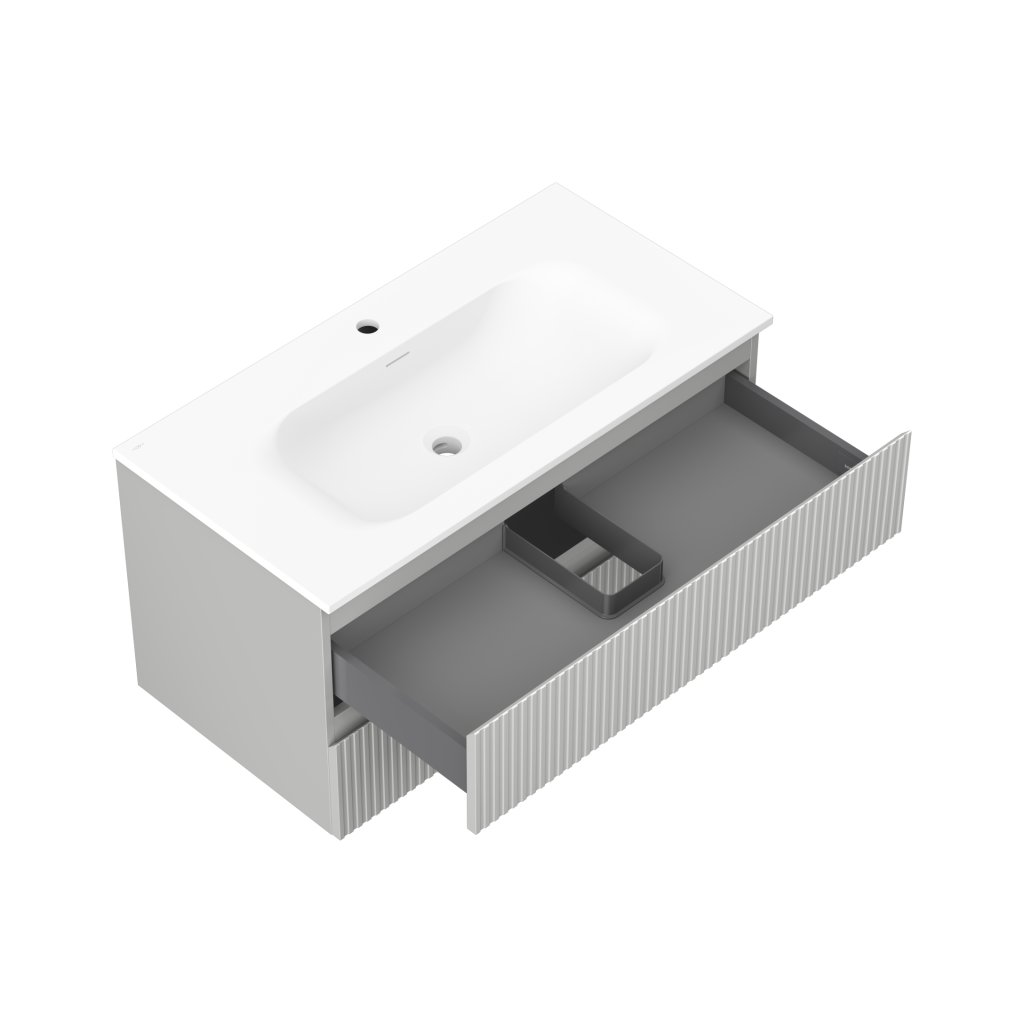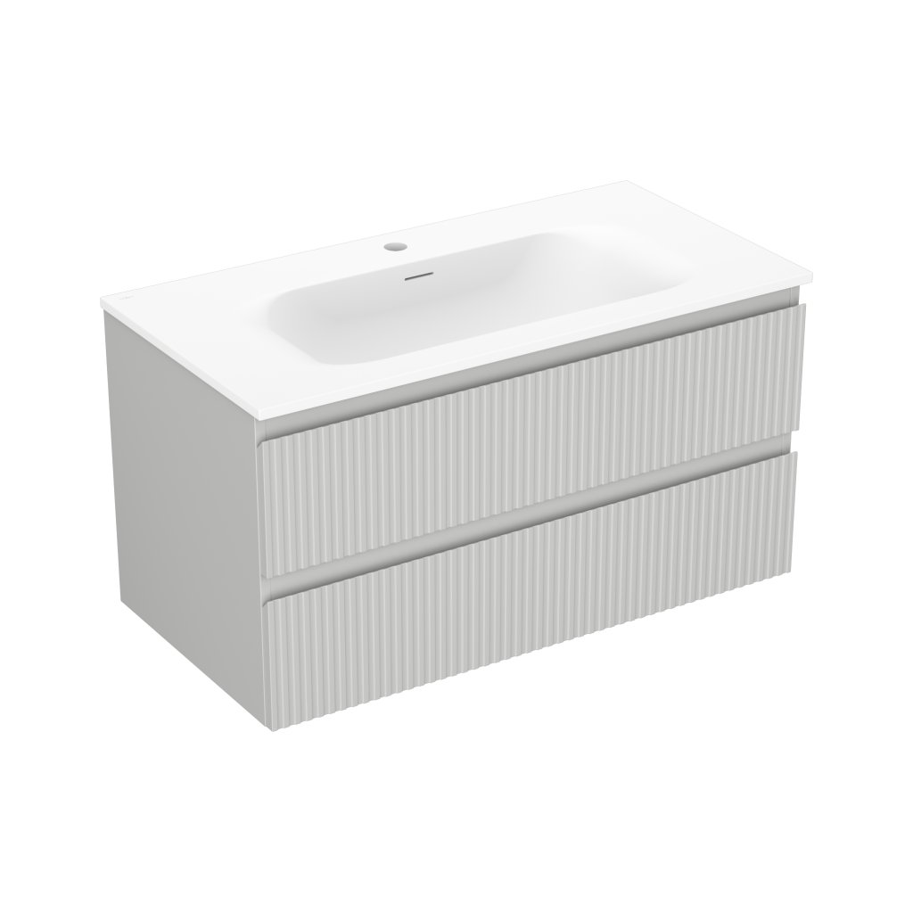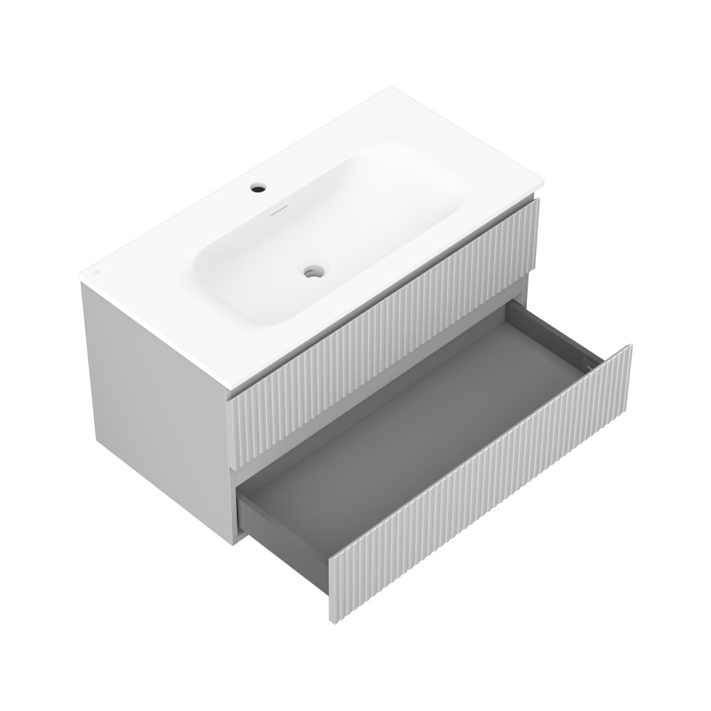 Mexen Rivel, koupelnová skříňka 90 cm s umyvadlem Vela, 2 zásuvky, drážkovaná, šedá matná/bílá, 91A20-09047-2-BFF62-W23M01