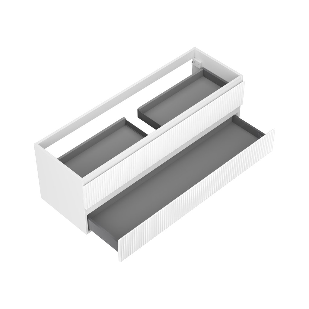Mexen Rivel, koupelnová skříňka pod umyvadlo 140 cm, 2 zásuvky, drážkovaná, bílá matná, 91A20-14047-2-BFF01