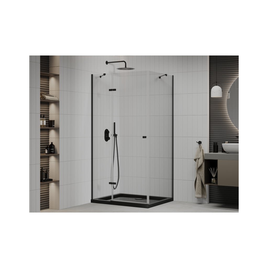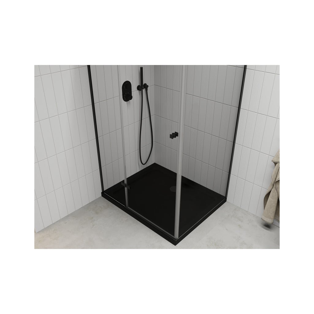 Mexen Roma, sprchový kout s 1-křídlými dveřmi 100 (dveře) x 80 (stěna) cm, 6mm čiré sklo, černý profil, slim sprchová vanička 5cm černá s černým sifonem, 854-100-080-70-00-4070B