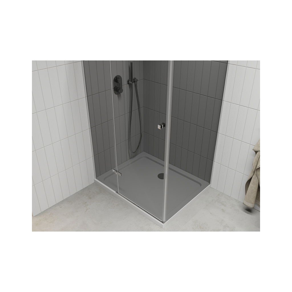 Mexen Roma, sprchový kout s křídlovými dveřmi 120 (dveře) x 100 (stěna) cm, 6mm šedé sklo, chromový profil + slim sprchová vanička bílá + chromový sifon, 854-120-100-01-40-4010