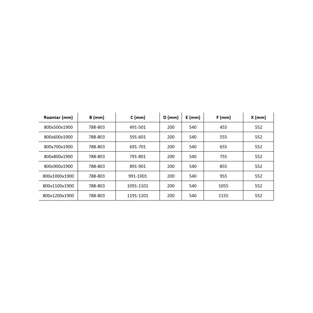 - Rozměry [cm]: 80 (dveře) x 100 (stěna) x 190 (výška)