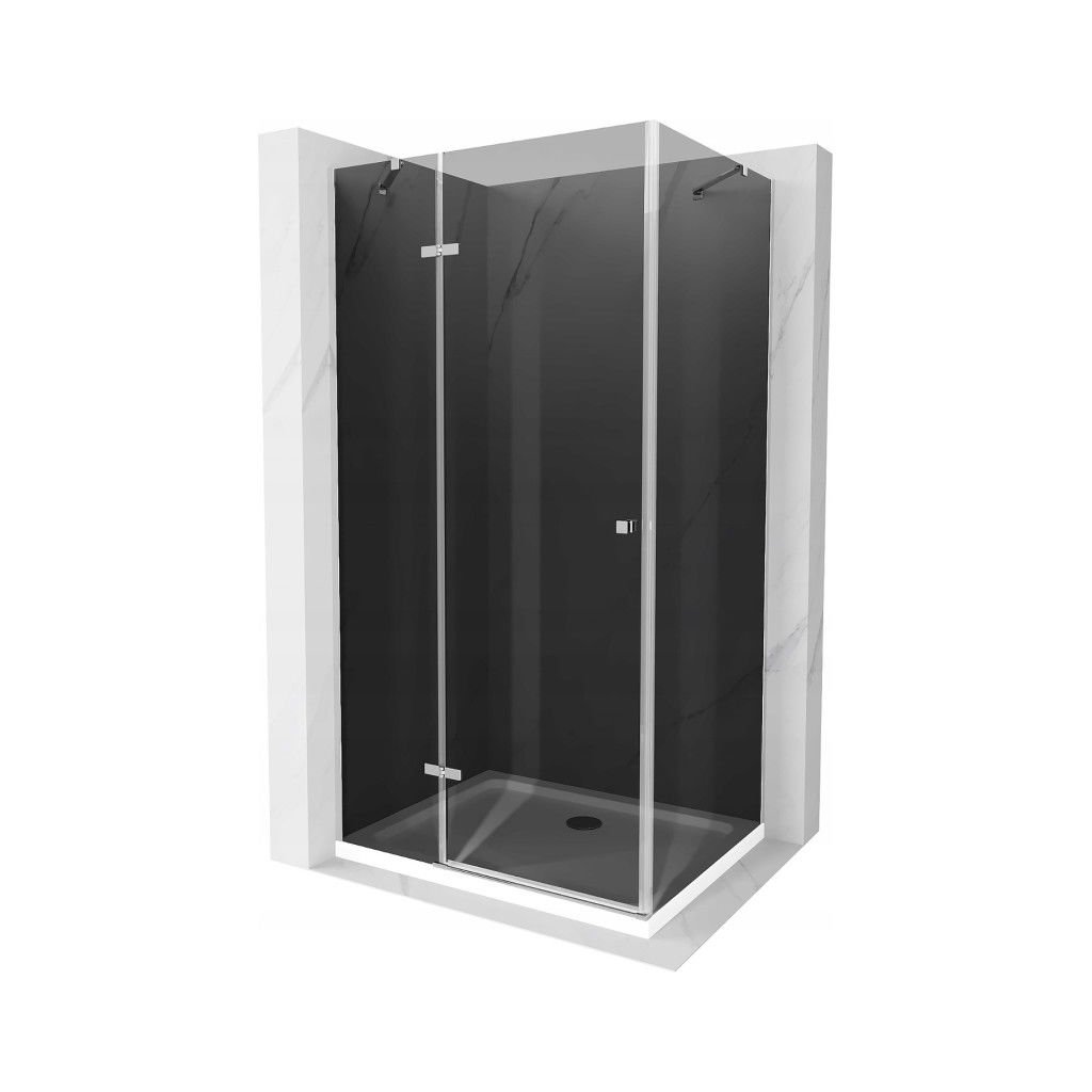 Mexen Roma, sprchový kout s křídlovými dveřmi 90 (dveře) x 110 (stěna) cm, 6mm šedé sklo, chromový profil + slim sprchová vanička bílá + chromový sifon, 854-090-110-01-40-4010