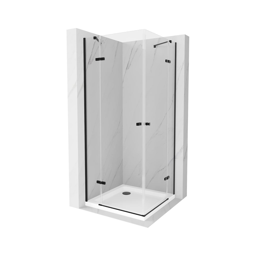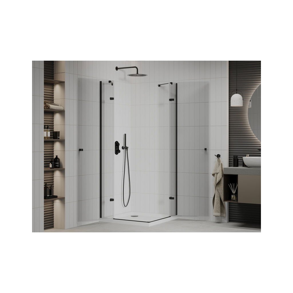 Mexen Roma Duo, sprchový kout 80 (dveře) x 80 (dveře) cm, 6mm čiré sklo, černý profil + sprchová vanička, 854-080-080-70-02-4010B