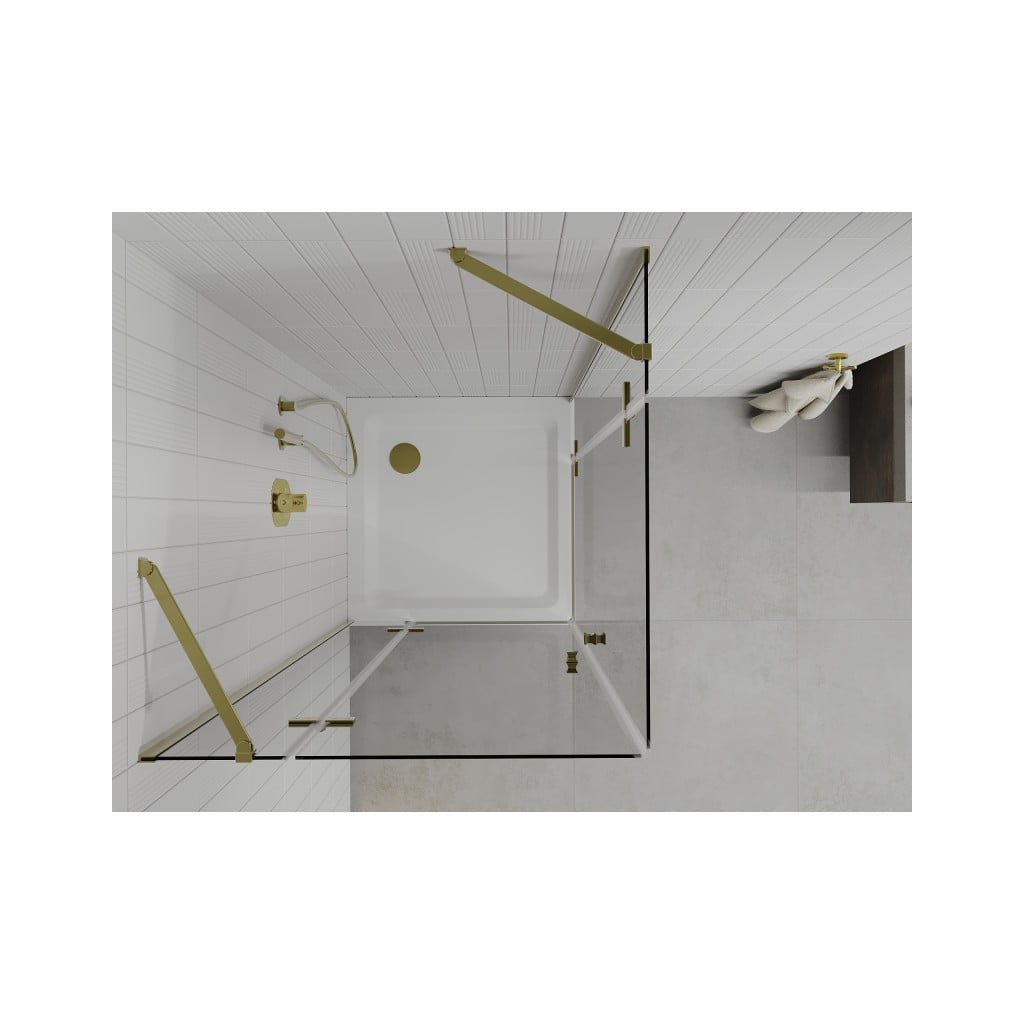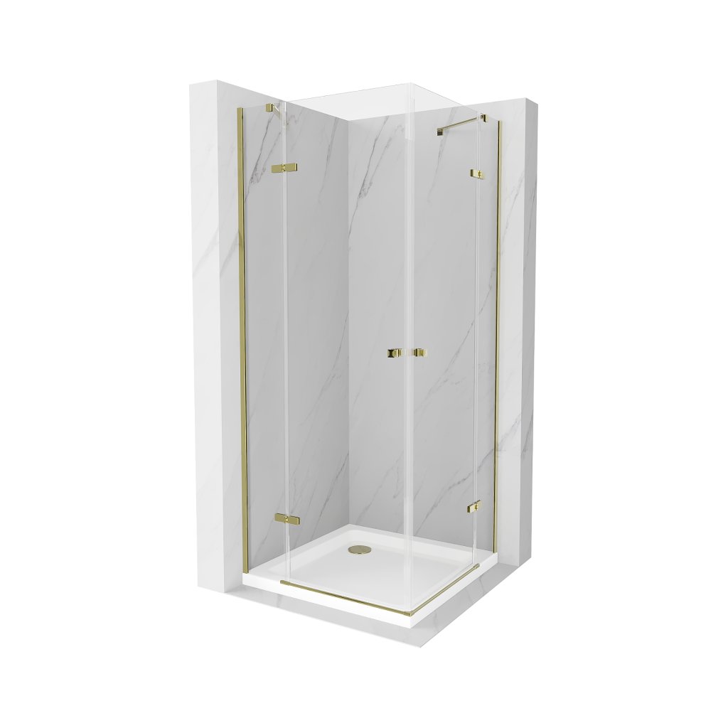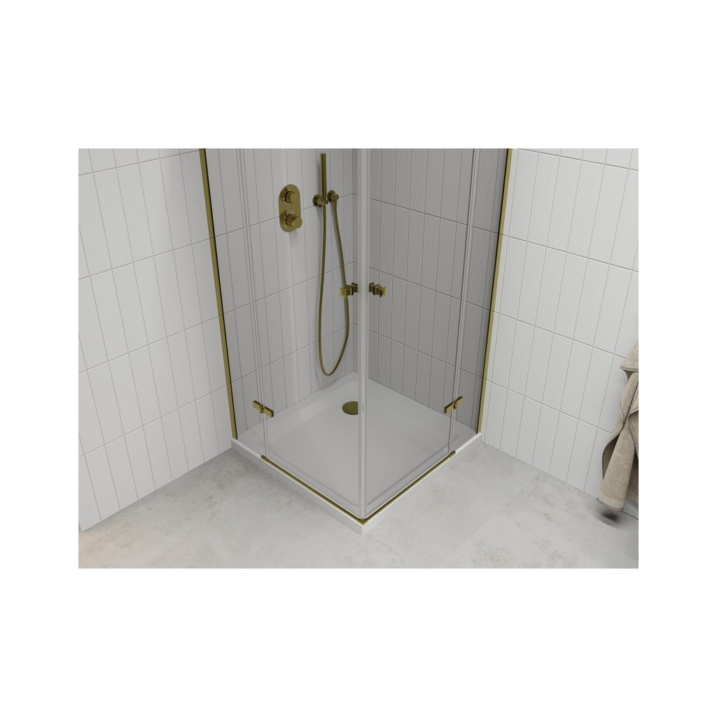 Mexen Roma Duo, sprchový kout 80 (dveře) x 80 (dveře) cm, 6mm čiré sklo, zlatý profil + sprchová vanička, 854-080-080-50-02-4010G