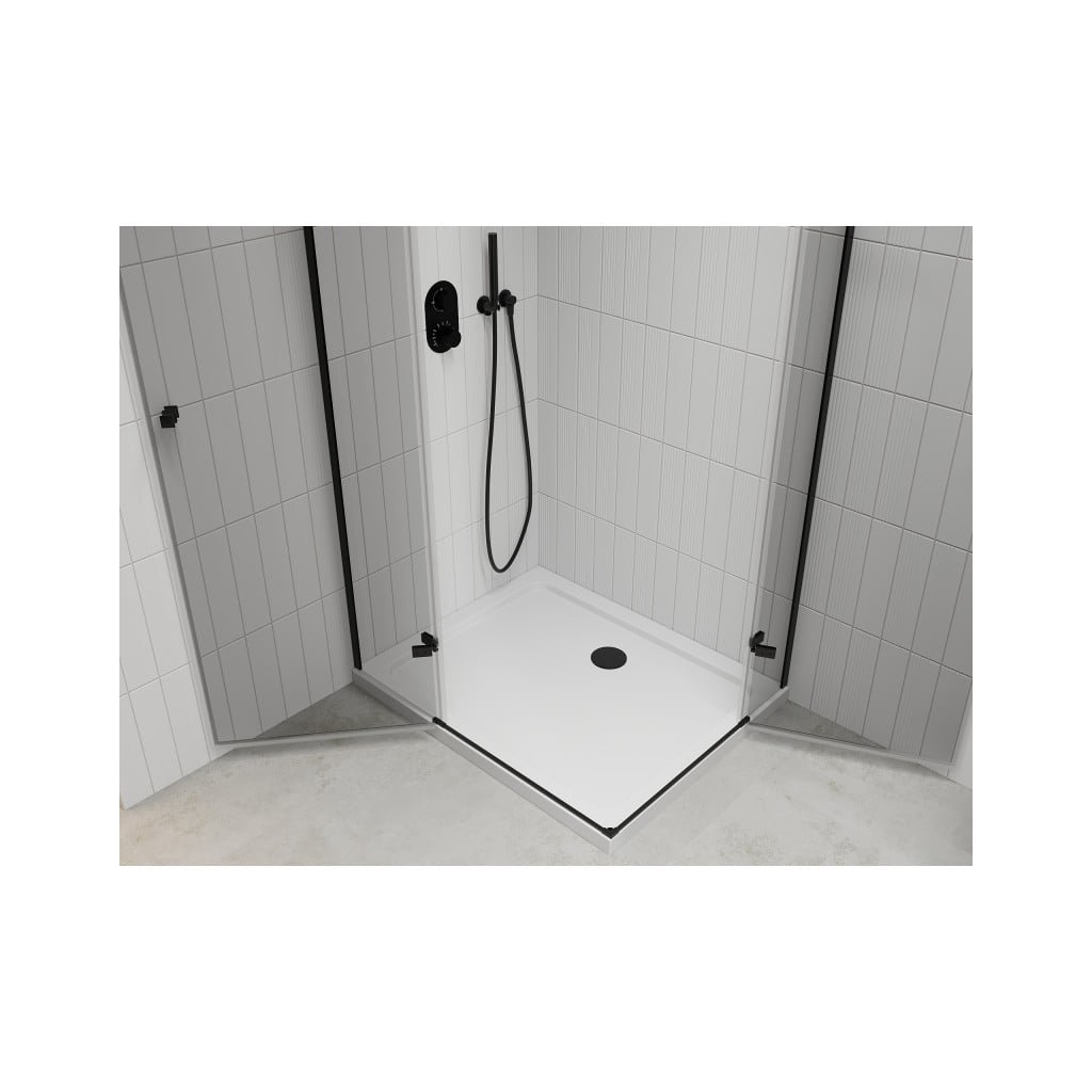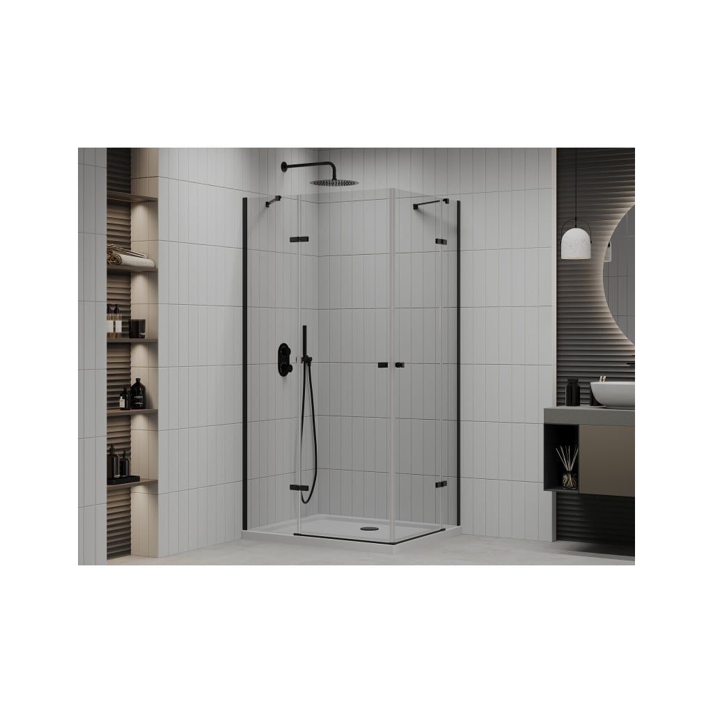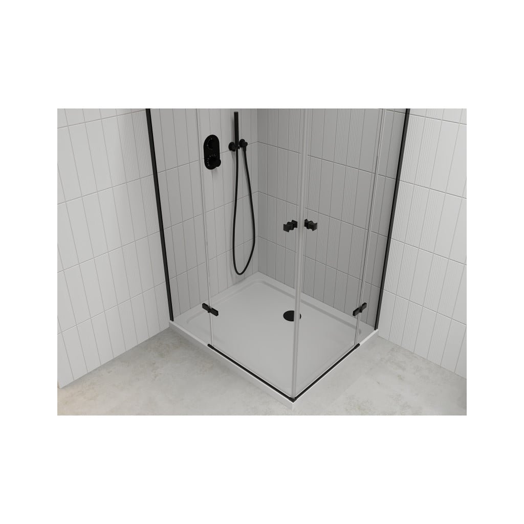 Mexen Roma Duo, sprchový kout 90 (dveře) x 80 (dveře) cm, 6mm čiré sklo, černý profil + sprchová vanička, 854-090-080-70-02-4010B