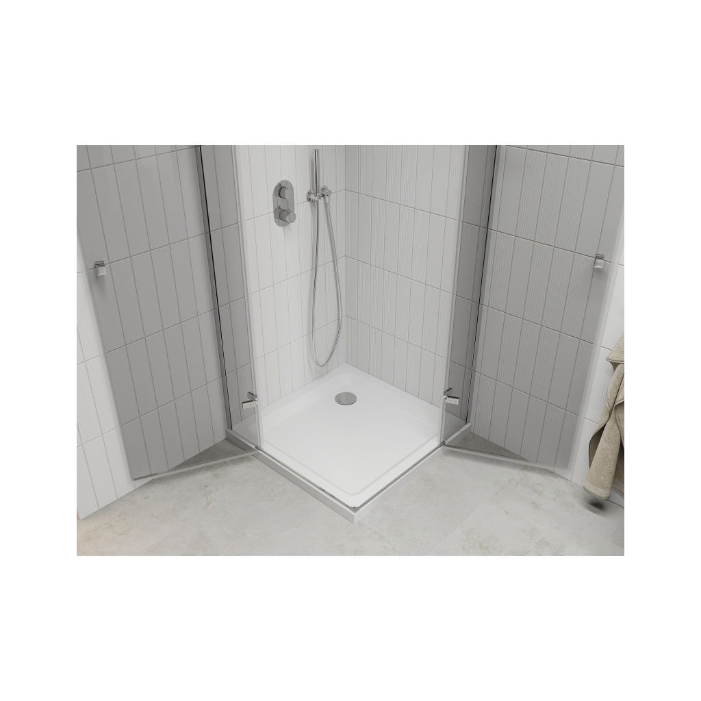 Mexen Roma Duo, sprchový kout s 2-křídlými dveřmi 100 (dveře) x 100 (dveře) cm, 6mm čiré sklo, chromový profil + slim sprchová vanička 5cm bílá, 854-100-100-01-02-4010
